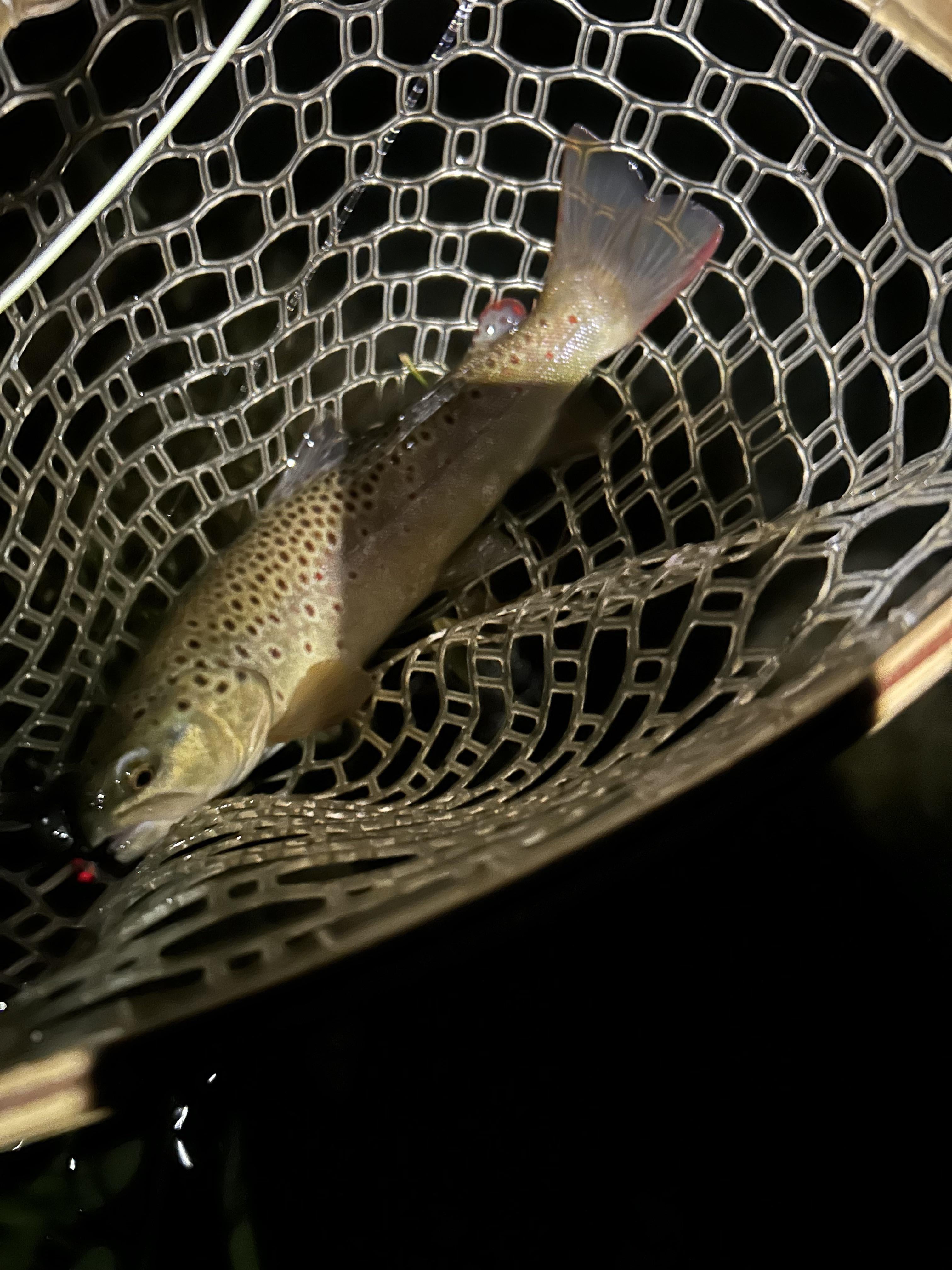 Just wanted to share because I’m stoked. I’ve been skunked here like 4 times. Not even a bite. I’ve refined my night fly somewhat and it gets a better strike to hookup ratio than my previous ones. Posted by BasedTroutFursona