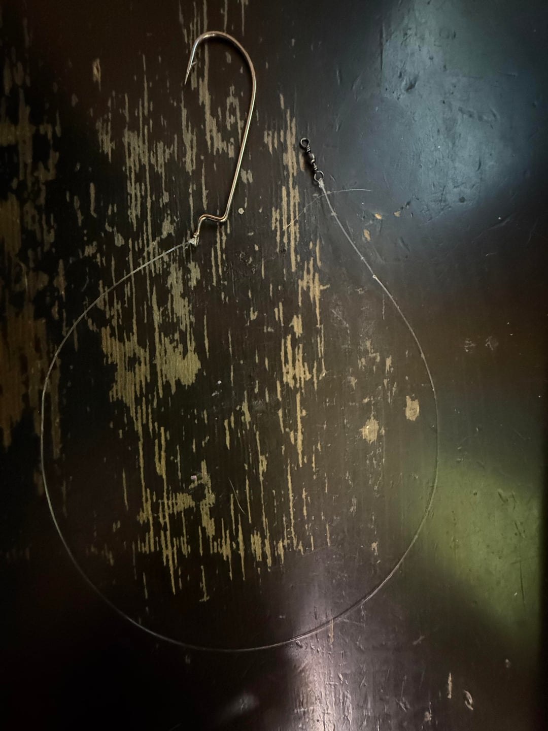 Then I will pre-rig leaders to my bait setups using whatever line I’m typically using for leader (usually flouro) by tying a small barrel swivel to one end, and running the other end to the lure/hook/bait (photo 2).
