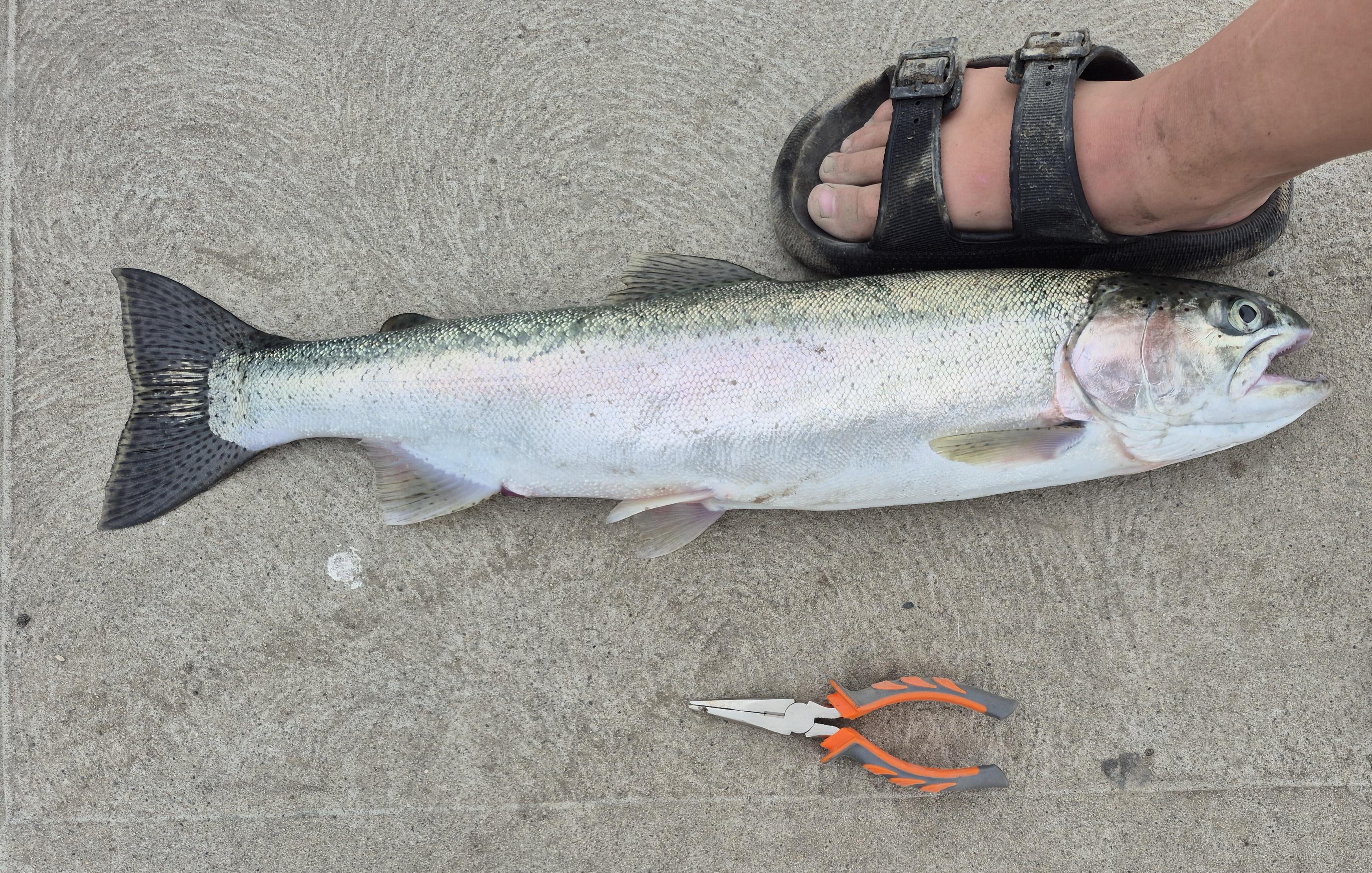 No banana available; human foot for scale.