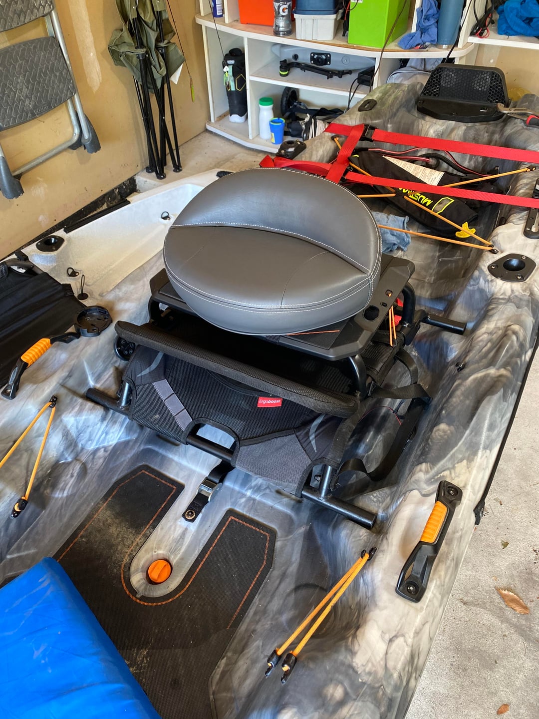 I’ve seen quite a few people posting their new catch modes lately . I fished out of one for 2 seasons and loved it. I did all sorts of mods on the boat but one of my favorites was sprucing up the bench seat. I just used to cam straps to attach a boat swivel seat bracket onto the bench with the pedestal seat attached. It made a world of difference in the comfort factor and also gave me the ability to easily turn around and access the back of the boat. I thought I’d share it in case any of the new owners wanna give it a try. I’m 6’ and right around 170lbs, the pedestal seat does raise you up a bit but I never felt unstable and never had a capsize across dozens of dozens of outings(beer sometimes included). I did start out with just strapping one of those cushioned bucket top swivel seats on there and it worked very well. I just liked it so much I decided to upgrade to the pedestal seat, but yeah that bucket top seat is a much cheaper option.