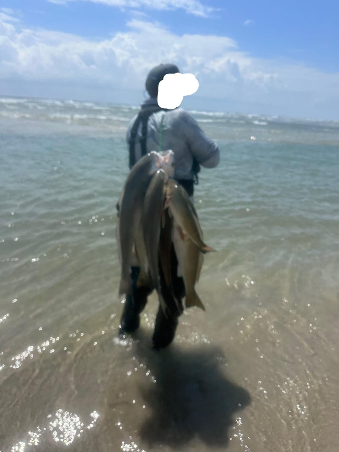 Using cut mullet on strong current days, lures when we can sight cast the shoreline