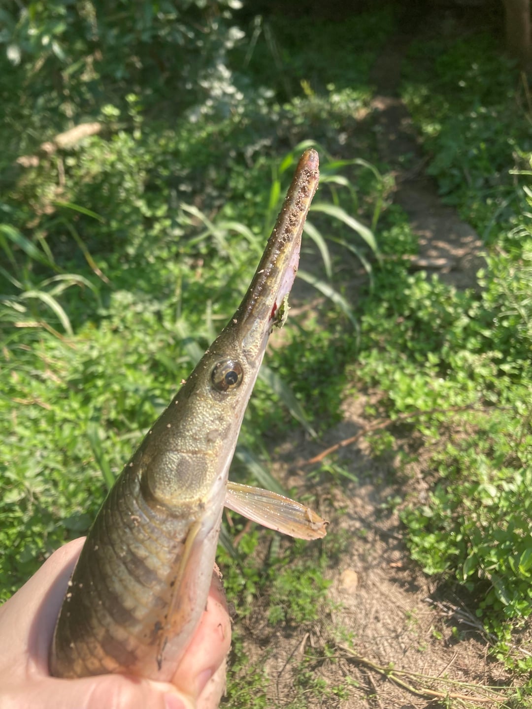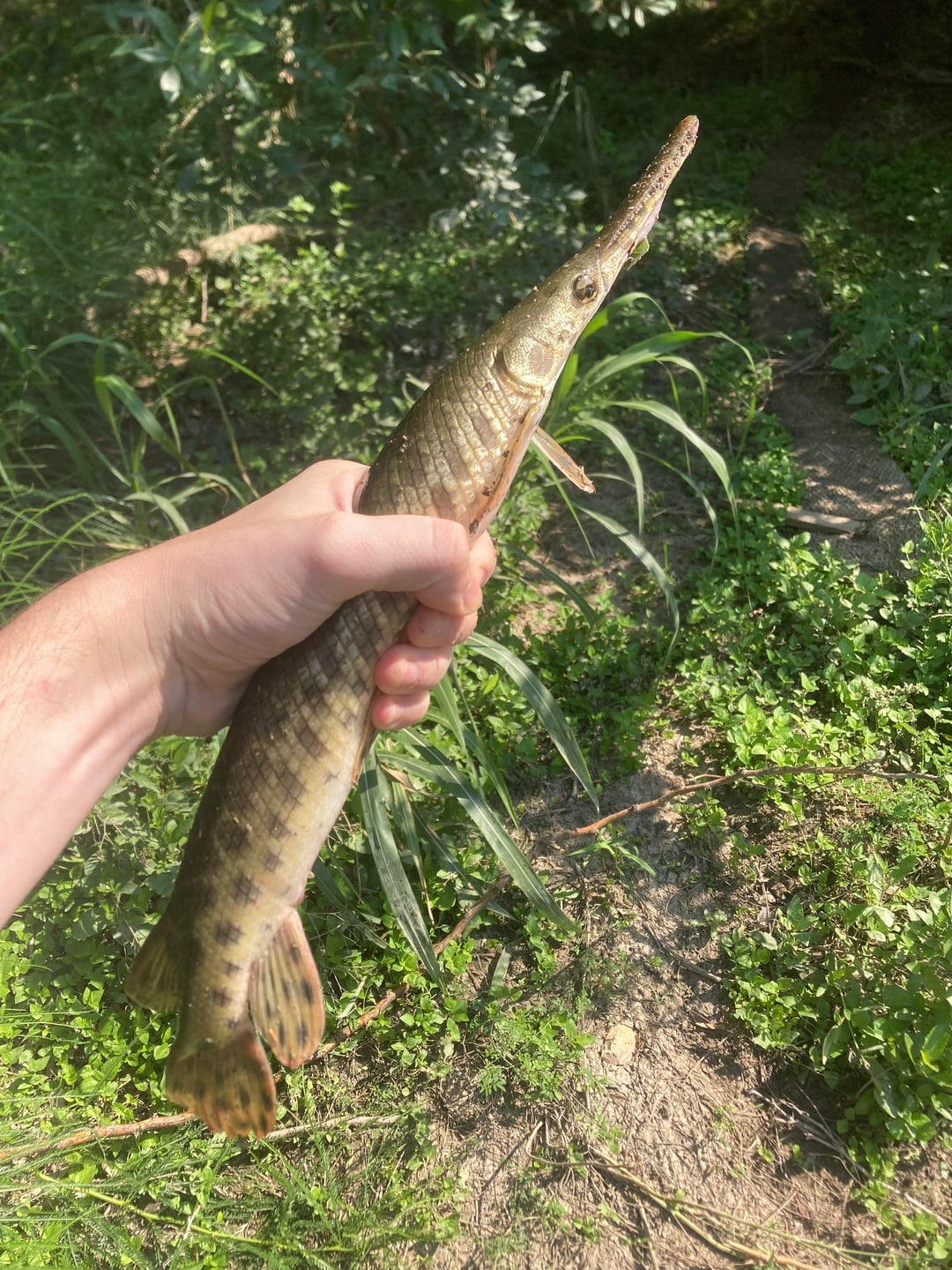 Appears to be a small needle nose gar. Yeah it has a bunch of needle sharp teeth and are very tuff to open up. Great eating though if you can get it out of its suit of armor. An axe and sheet metal shears along with a good fillet knife are what I use. The back straps are like chicken breast, white meat and kind of bland Best if cooked unfrozen imho. Great catch 👍