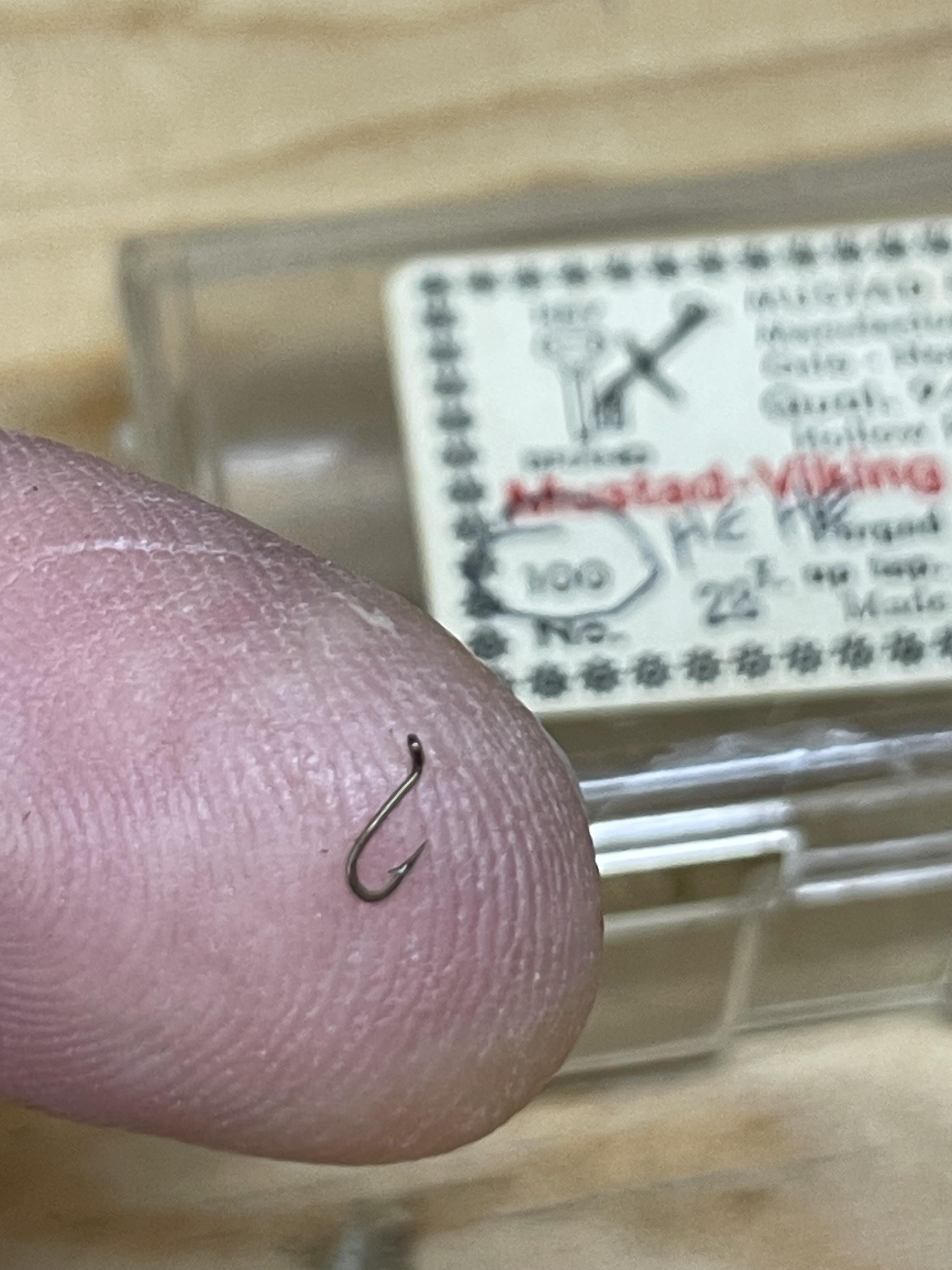 Got these hooks from my father-in-law many years ago along with a lot of other supplies for tying. I guess he thought it was pretty funny cause he wrote, "he he", like laughing on the box. Posted by Bempet583