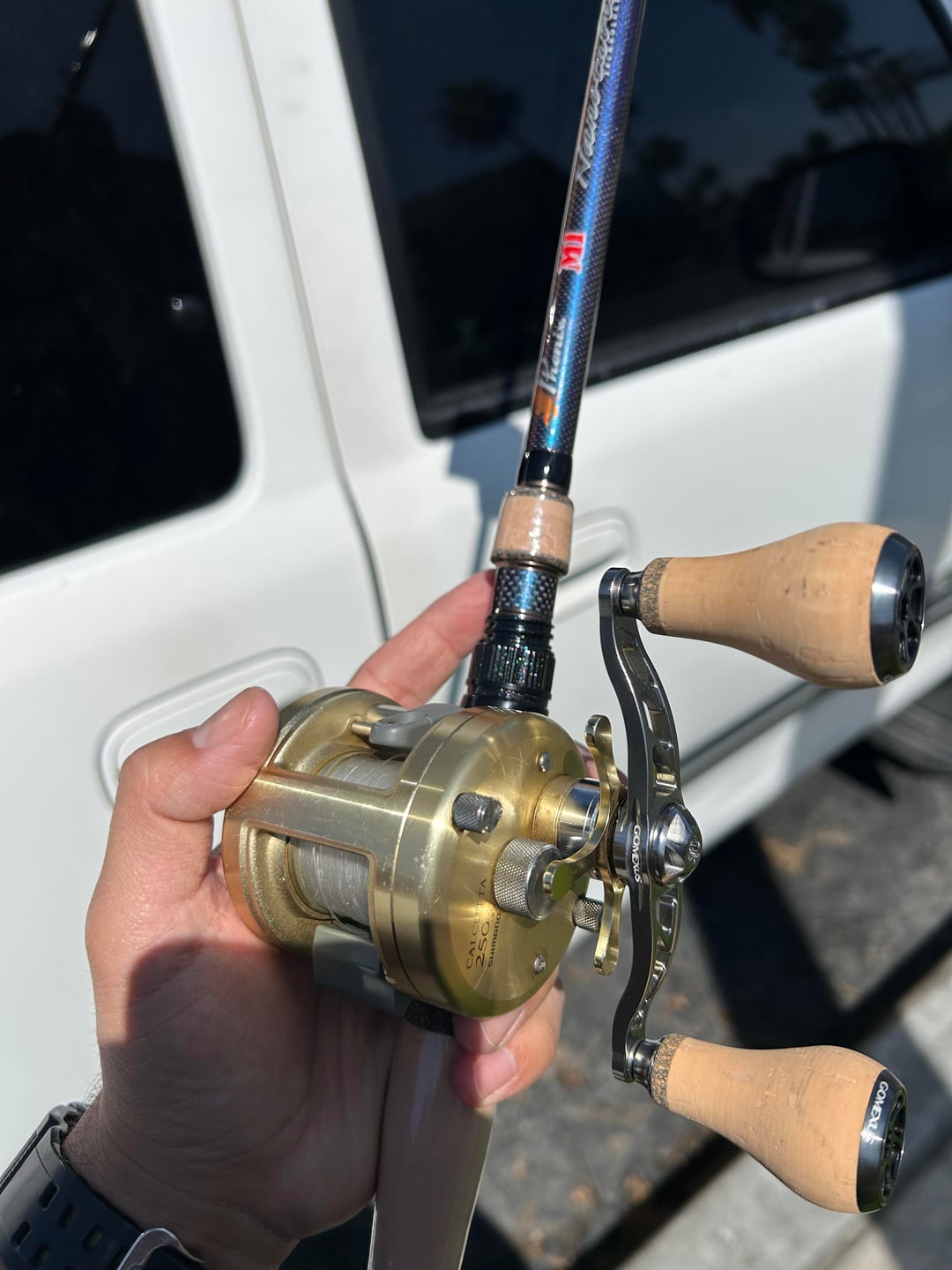 Been looking for a rod to pair up with my Calcutta250 and boom. Aesthetically and functionally perfect. A Phoenix M1 with the nanotube tech. This setup I will be throwing 14lb fluro (pLine) anything from 1/2oz jigs, underpins, spinnerbaits, crank baits, and possibly some topwater. I also have an Inshore M1 in an 8’2” for a swimbait/glide bait rod and I’ll tell yuh these m1’s are perfect. I’m glad this one has the cork!