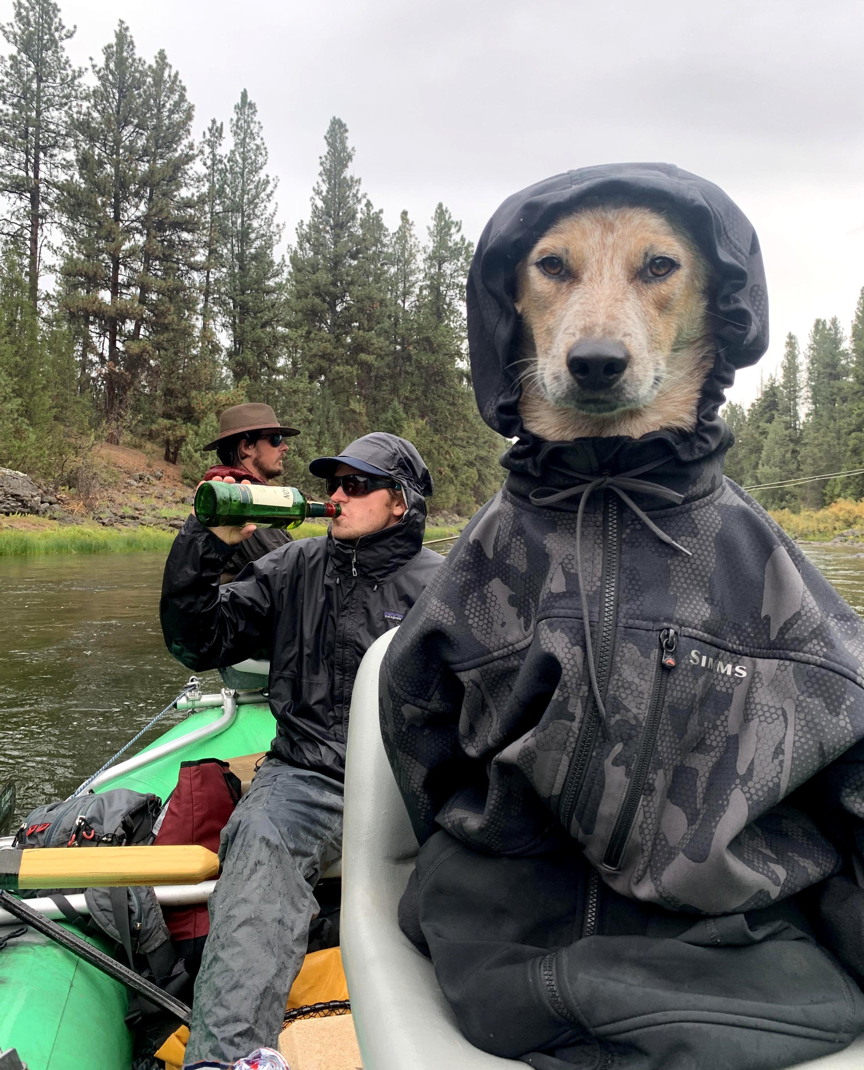 YoureSpecial on September 12, 2025 1:07 pm Dog looks like granny out for a Sunday drive. Dude looks like he’s trying to think like a fish by drinking like one. Guy in front is wondering how he got there.