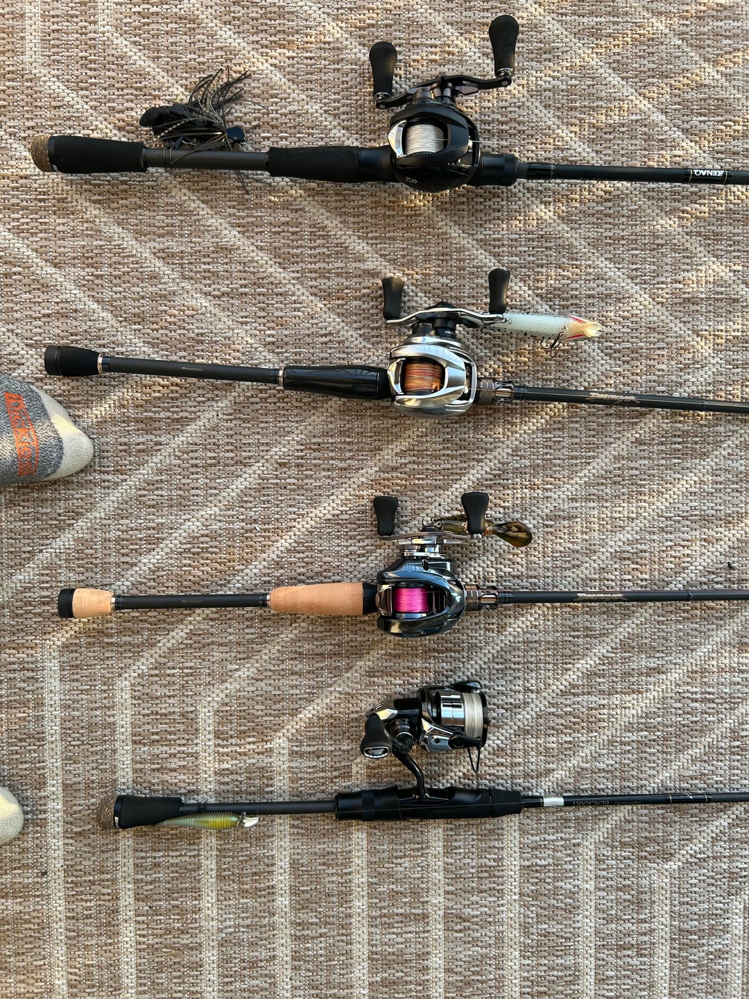 Then the Megabass Destroyer P5 Cyclone. Really fun, insanely light rod. Jerbaits, small cranks of all types in 3/8 range. SENKOS and flukes. Just about anything in the 1/2oz range except for jigs. Paired with the Aldeberan DC. The best balanced combo I’ve ever felt. Feels almost like a toy rod and is really fun.