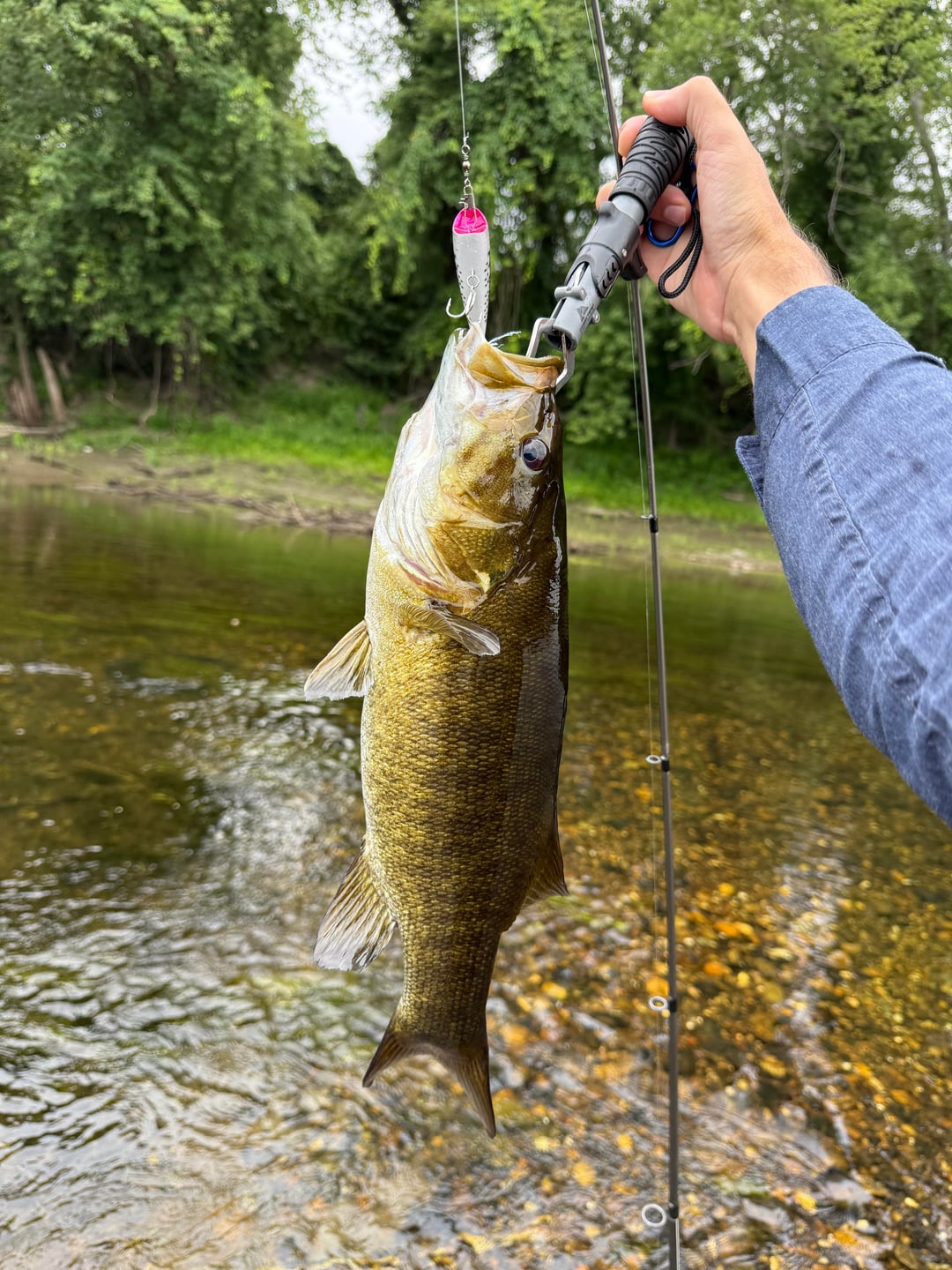 While I’m terrible at taking pics of fish, and generally only take one pic per day, caught some nice fish. Topwater almost exclusively, pop-r and whopper plopper/choppo mainly. No trophy fish, but some solid smallmouth fishing.