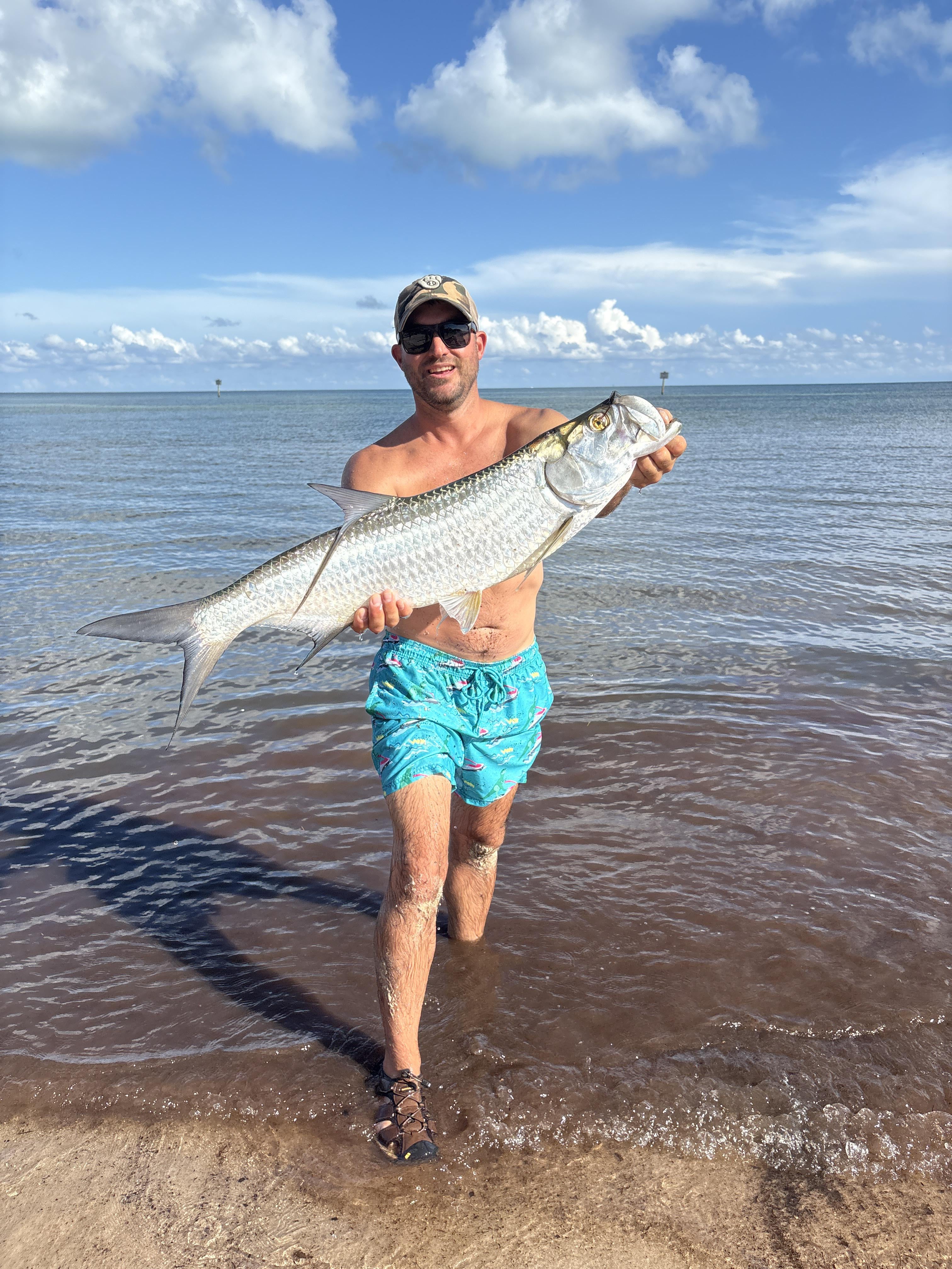 I've always wanted to catch a tarpon. I live in Wisconsin and have caught 40 plus inch musky, pike, and salmon. So im no stranger to some big fish. But this is my favorite catch ever. Today off the beach in Key West. Just a little white paddletail. I was hoping for a random 2 footer at some point and ended up catching this. About 55 inches. Anyone thats knowledgeable have a guess on wieght?