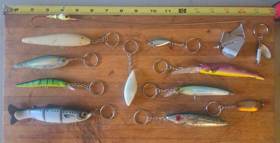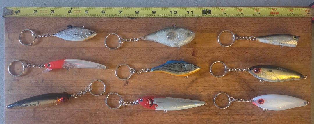 I fish from a kayak, so I do the same but will clean them up, swap out the split rings and hooks, and throw em in the tackle box (or gift them to someone). I do the like the idea of a key chain though for ones are too busted to re-use!