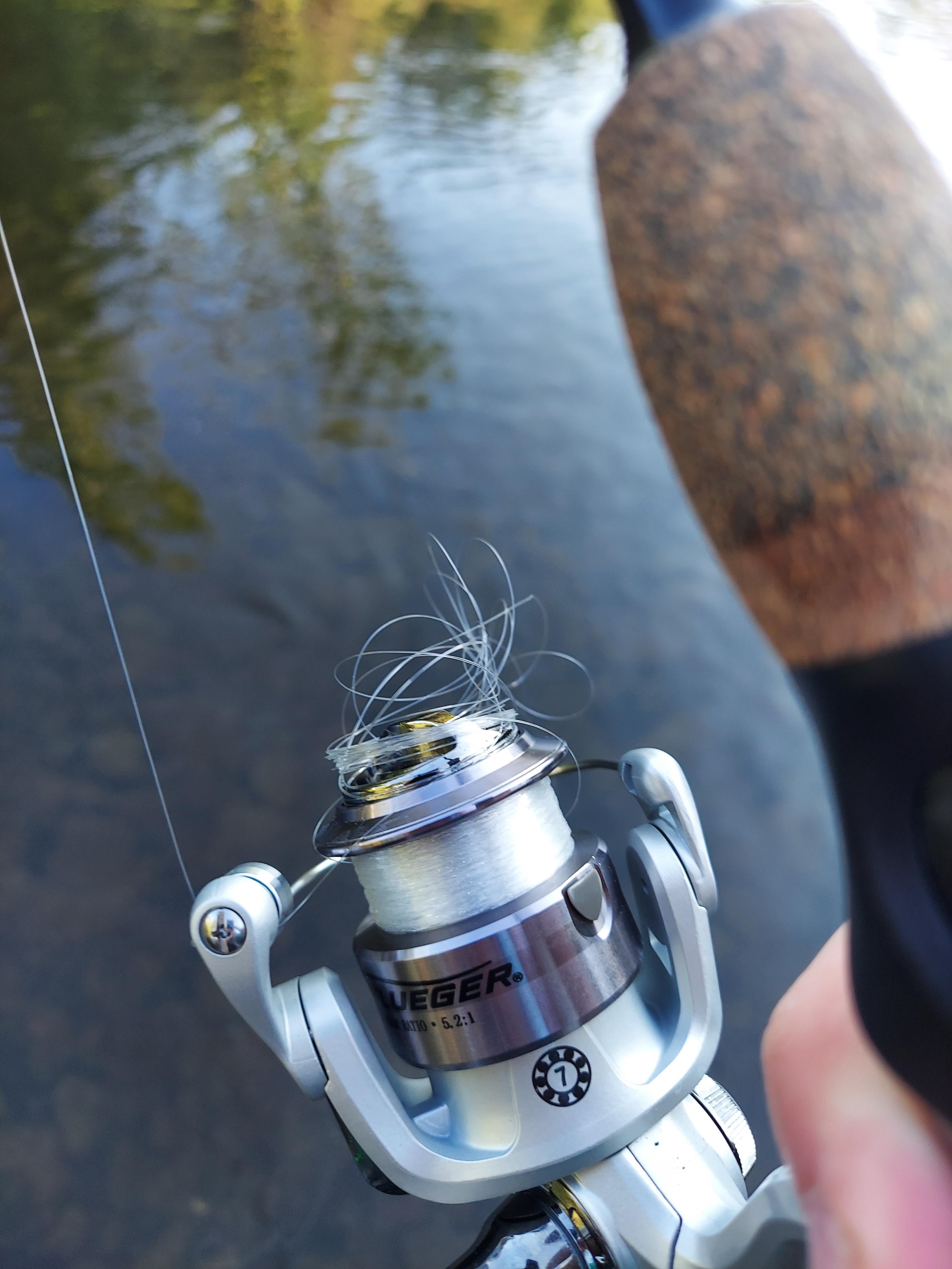Line wrapping around the drag adjustment knob. Plueger Trion SP25