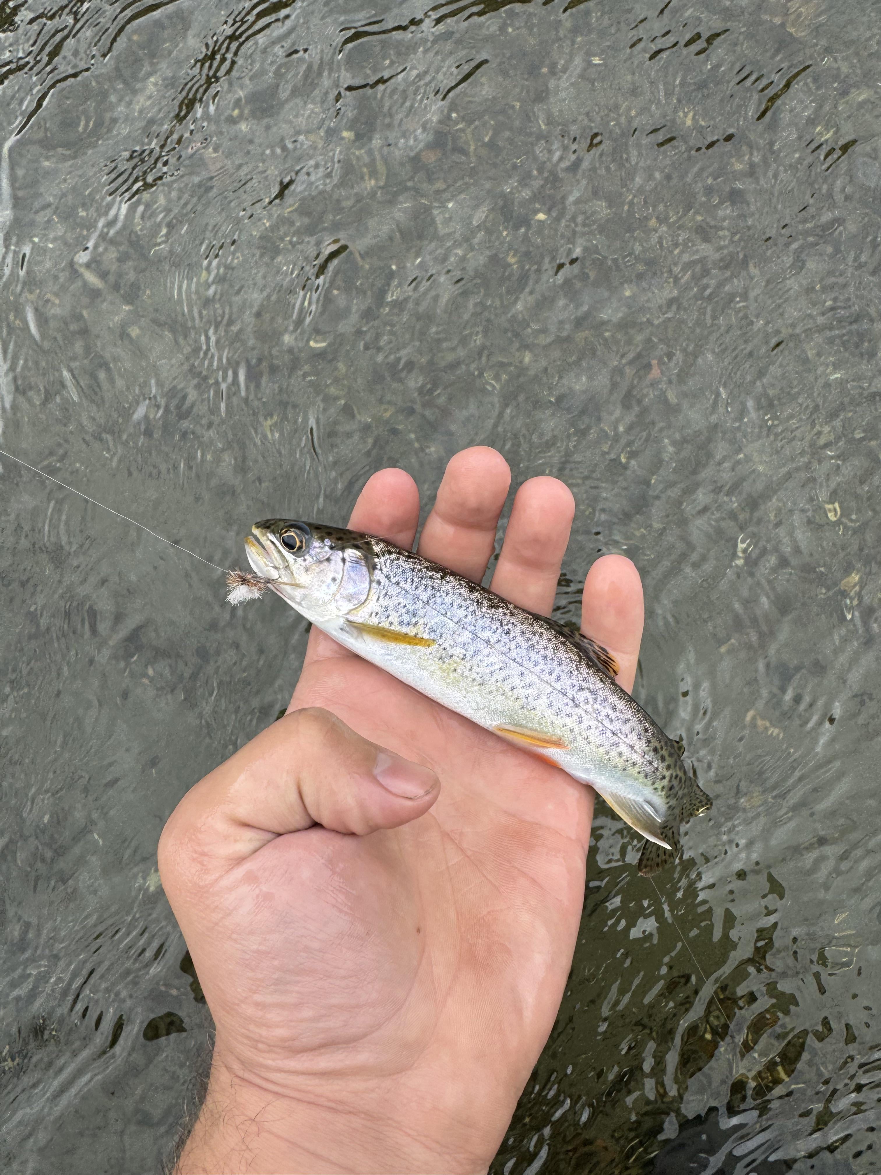 After missing the hook set on about 10 fish going for the dry fly, finally got one landed! The crazy thing was a smaller fish took the nymph dropper as I was stripping this one in, so I had two on for a second. Anyone ever land two fish on a dry dropper rig before?