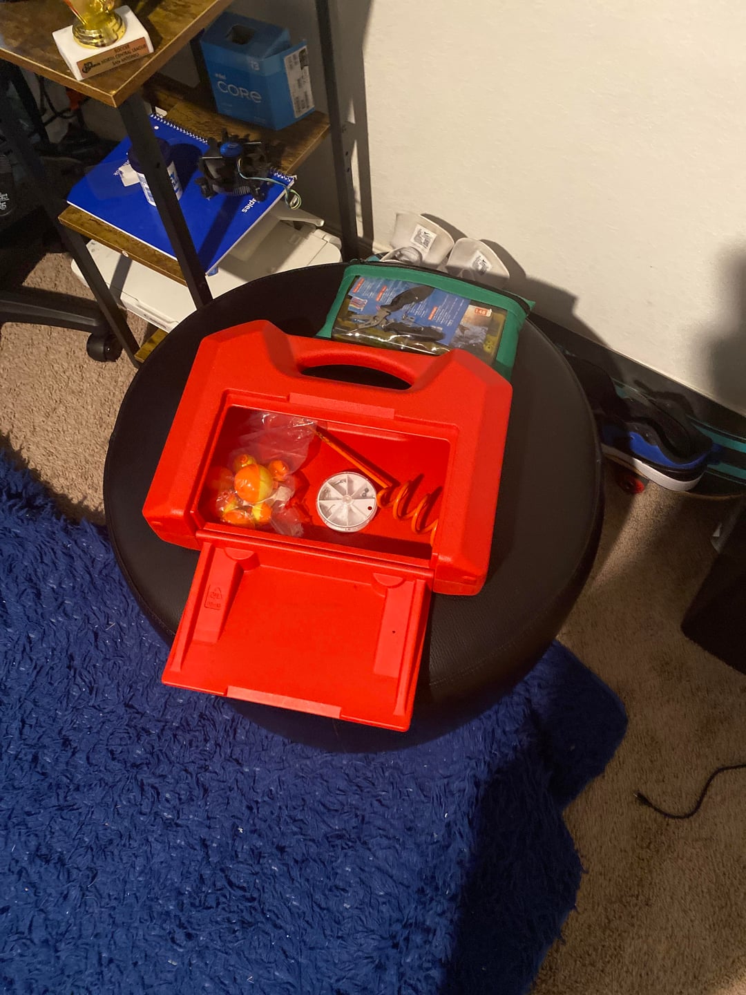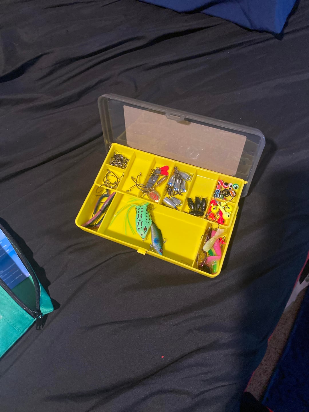 I got the fishing kit as a bargain for $10, the rod holder for free (shoutout random guy at millers pond), the hook wheel from a lil kid me, and the box is a random box. The rod is a quantum rod with a pistol grip the I salvaged from a broken baitcaster. Is this good? Do I change anything???