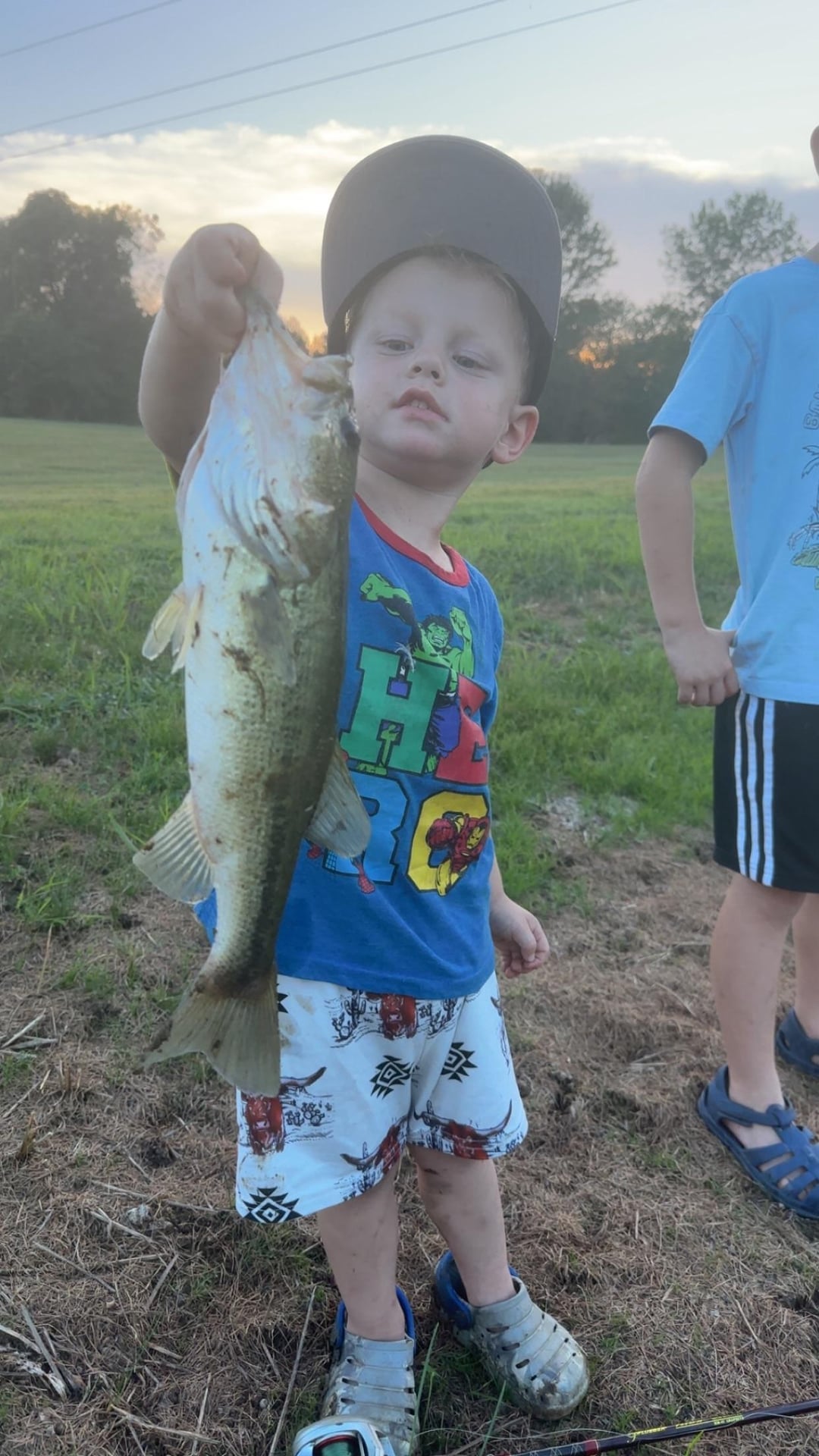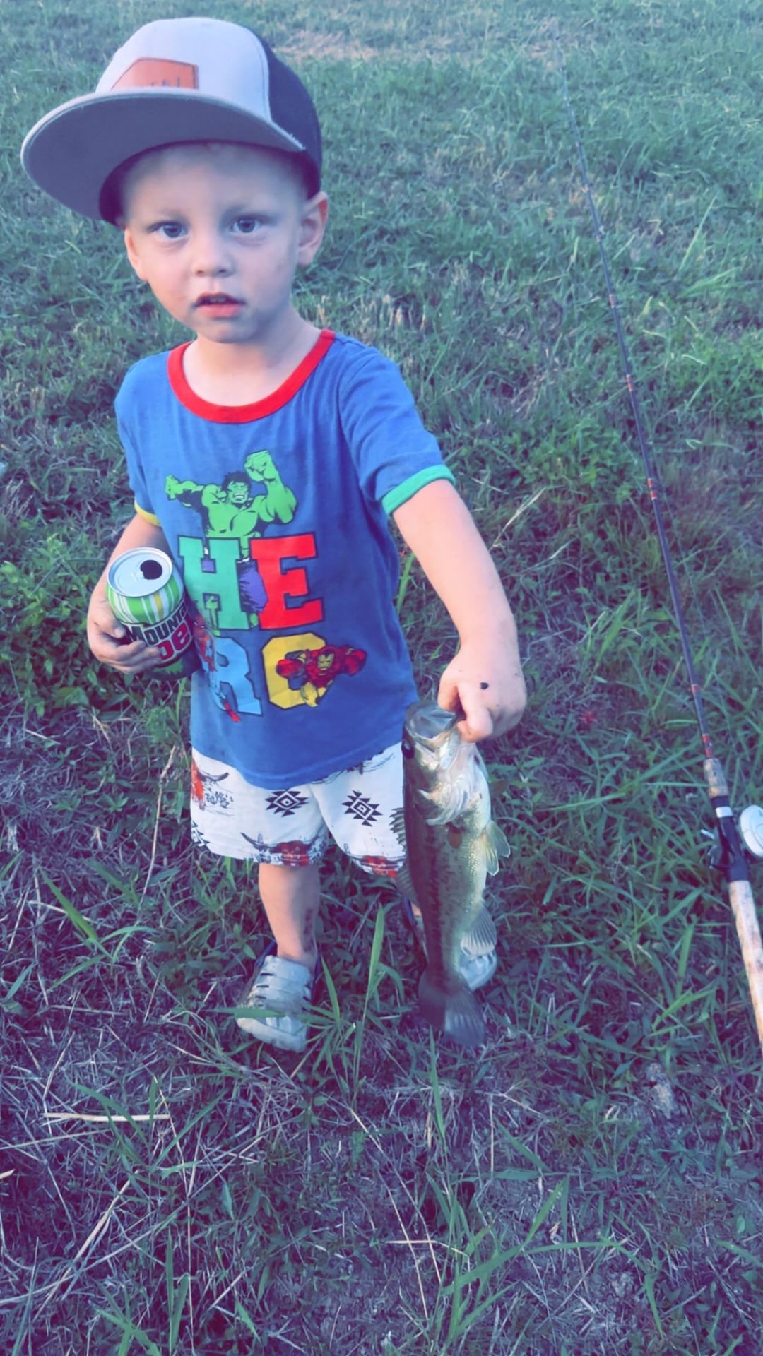 My three year old son. He has his lifetime Mr hunting/fishing license and already out here catching bigger fish than his momma!!