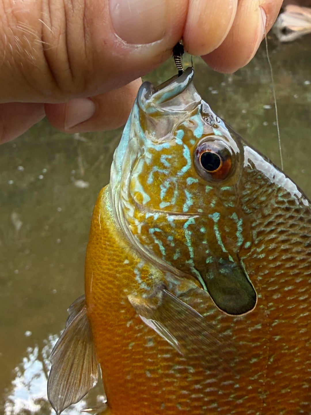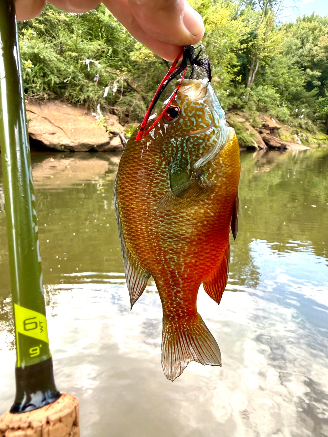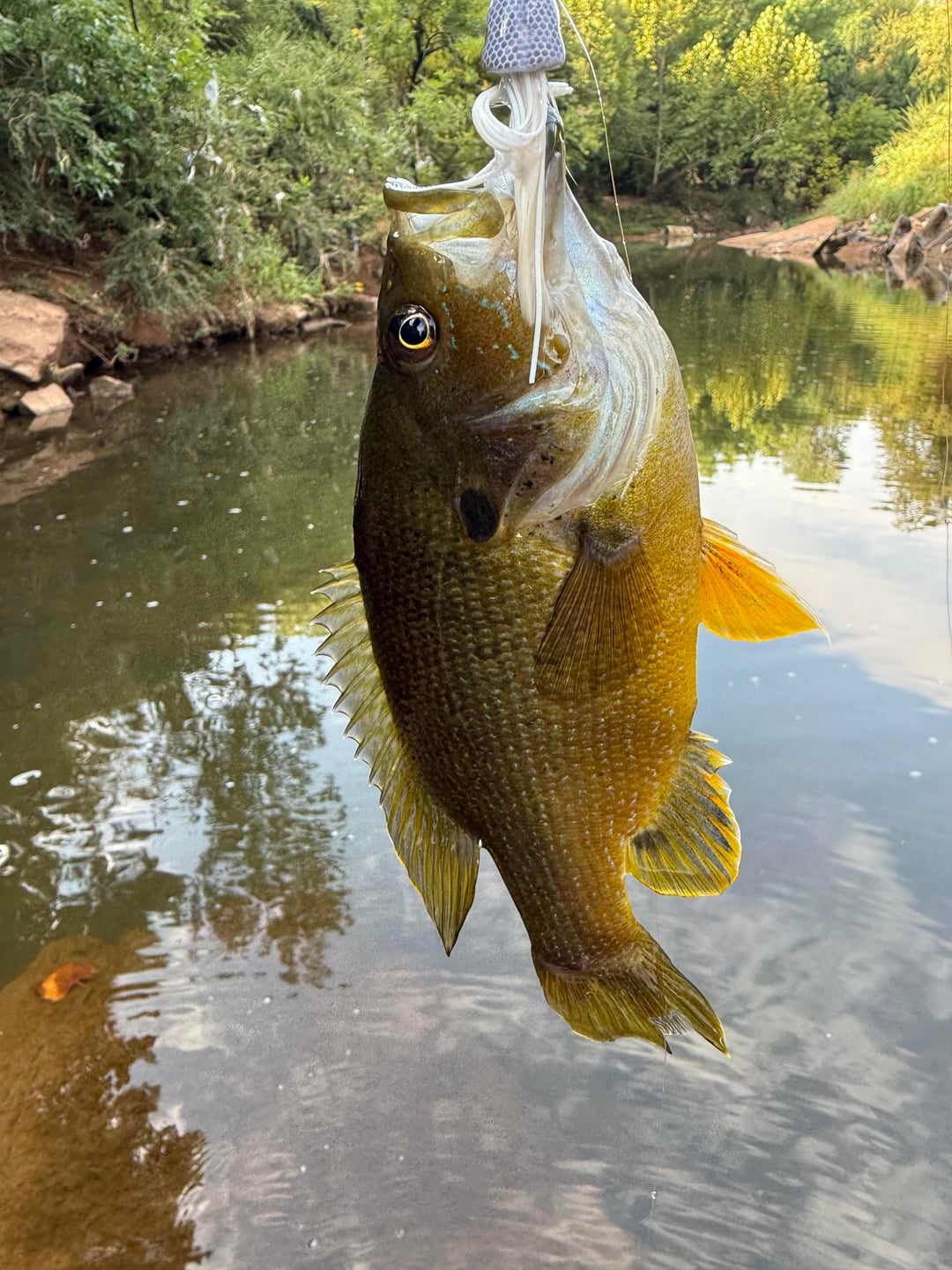 Caught several beautiful plains longear sunfish, very well fed greenies, and some largemouth in the river that runs through town that is basically never touched by anglers. Hard to beat! Posted by onicholas21