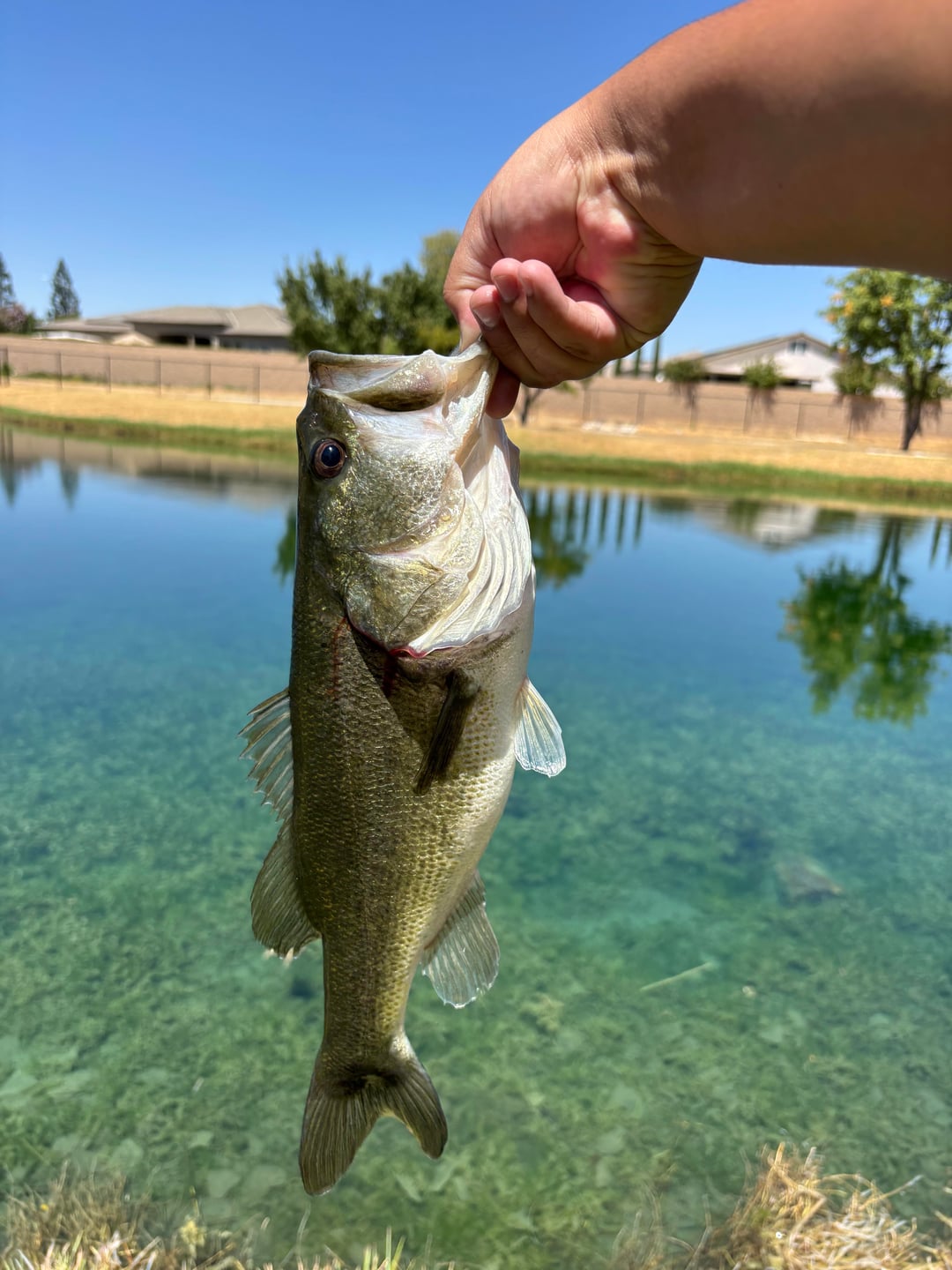 Ok so this past summer I finally thought it was a good idea to fish in my pond and I’ve been hooked( get it) anyways , now I have abt 3 rods 1 spinning , two baitcast, I want some other bait recommendations, I’ve caught at least one fish on a rage swimmer on a jig, fluke on a jig, fluke alone, chatter bait with rage swimmer trailer, a frog, obviously a senko both wacky and Texas rig and I think that’s it, the pond is clear, very grass bottom not much cover except at the shore kinda, it’s about an acre big, I’m Claire’s and it’s hot as hell. They tend to bite like in the morning, at night, and like around two other than that they don’t at all, but I noticed this absolute monster in the pond I assume maybe 4 or 5 pounds, this pond is spread across three houses, but any recommendation on what to use, I have noticed that one York I caught a little dink and as I was reeling in he snatched the fish and had it in his mouth then slit it out but here’s some catches
