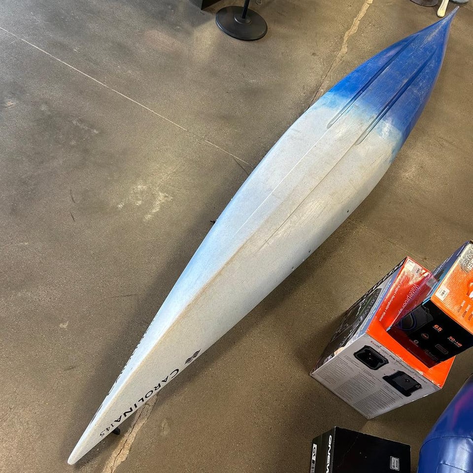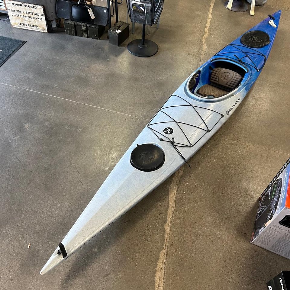 Used Perception Carolina 14.5 kayak in excellent condition, blue/white, 14.5 ft, stable and comfortable with dry storage, perfect for day trips or overnighters — $400, local pickup or we can arrange shipping if the distance is far.