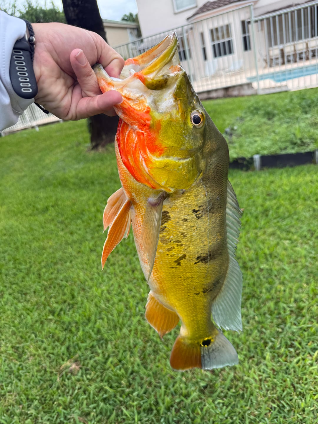 My largest peacock bass, no scale but at least a pound 🤪