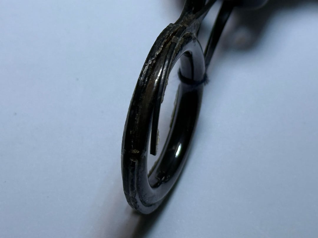 I temporarily fixed it with nylon line and superglue when guide metal ring broke first time, but it broke again now in 3 piece.