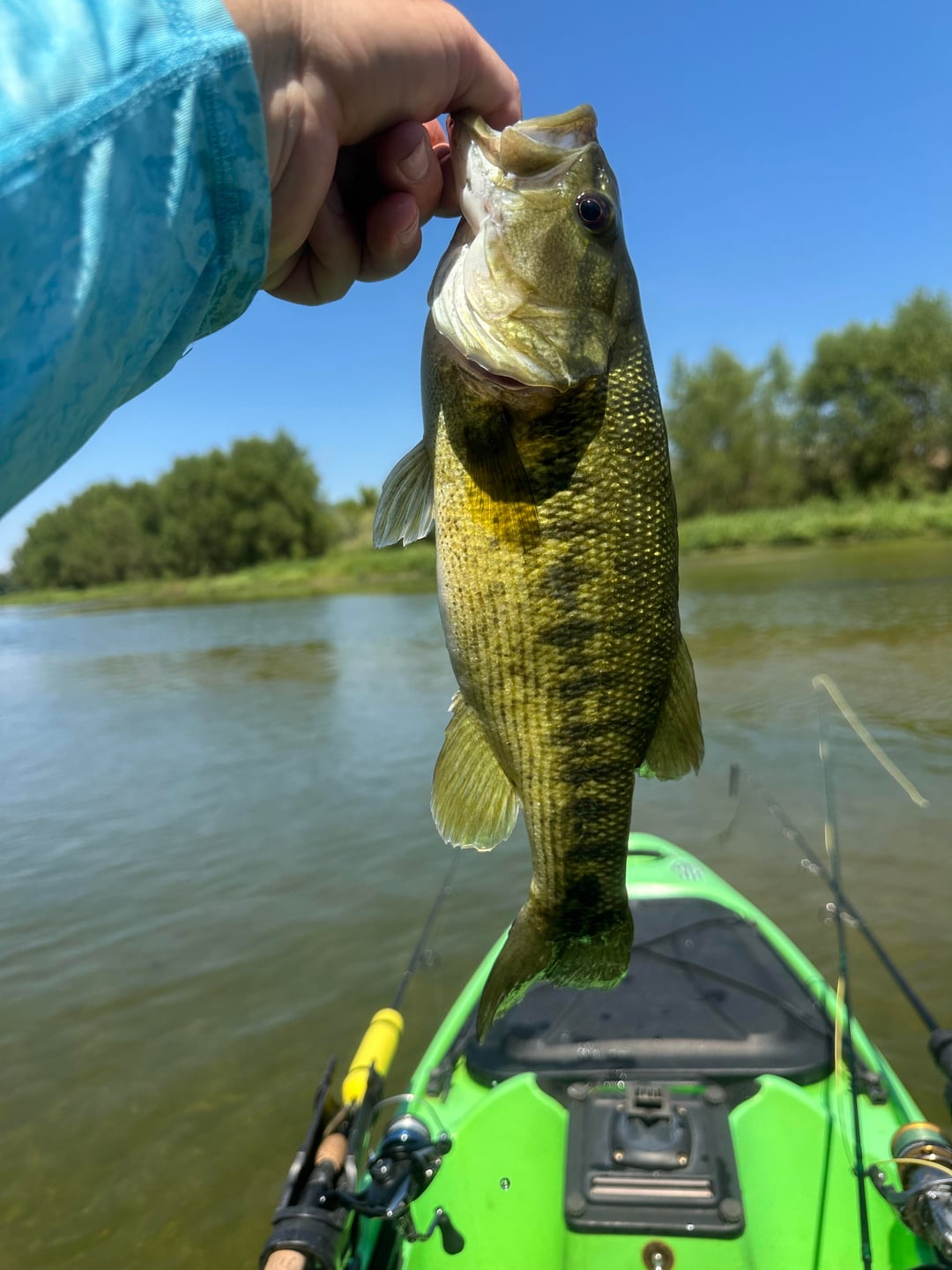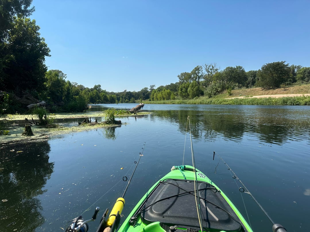 Mostly threw flies today and the Guadalupe bass and sunfish were happy. Blew out my crappy water shoe when wading in a riffle, but otherwise a picture perfect late summer day.