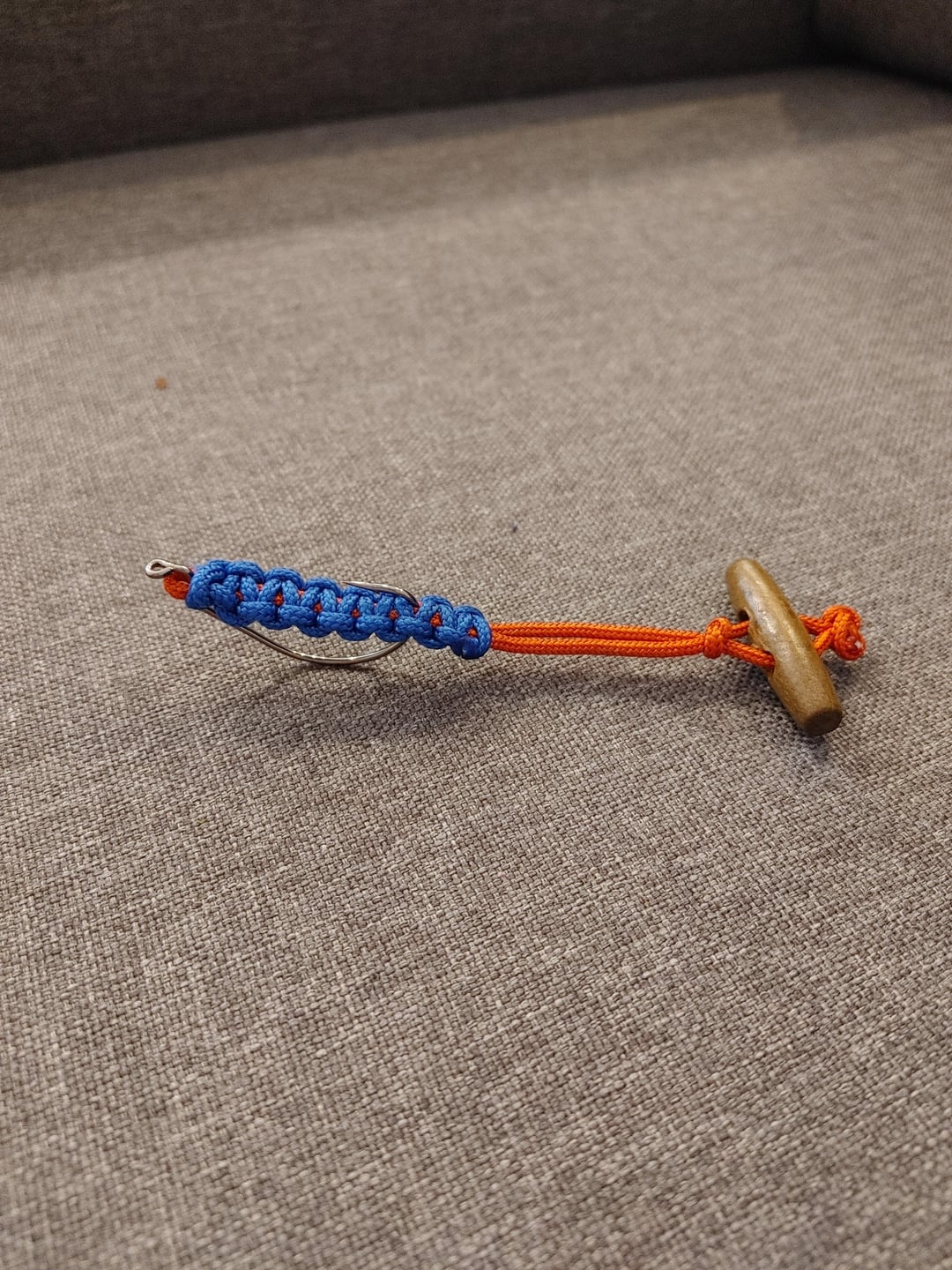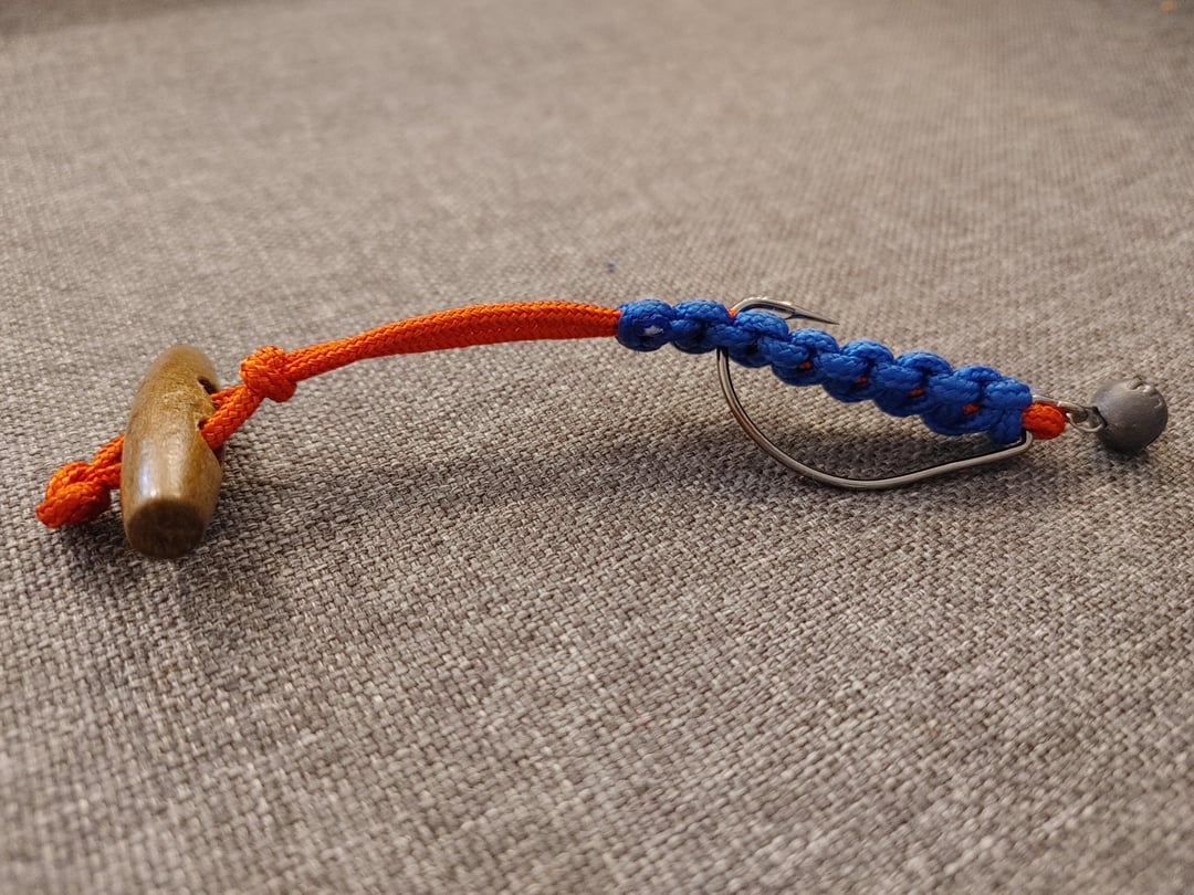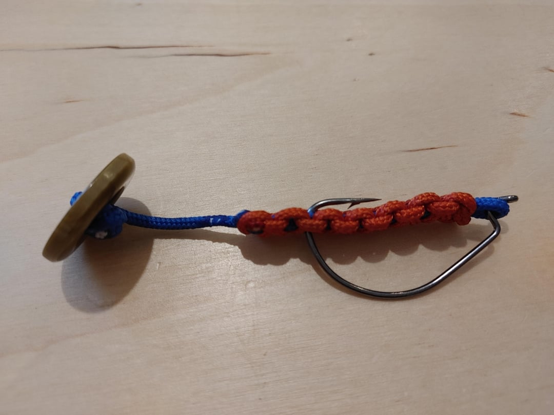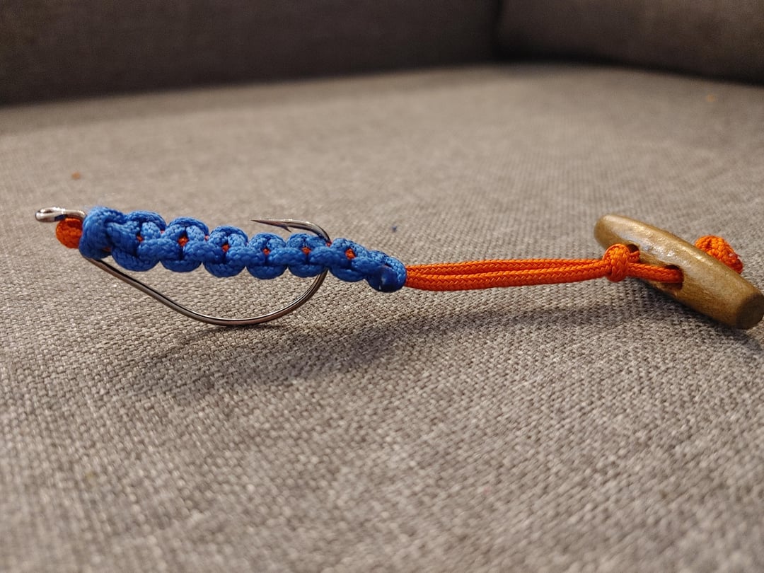 I’ve been messing around with a survival-ish minimalist build using nothing but paracord, a hook, and scrounged parts. The goal is to get something that acts like a soft-plastic T-tail or a swimbait.