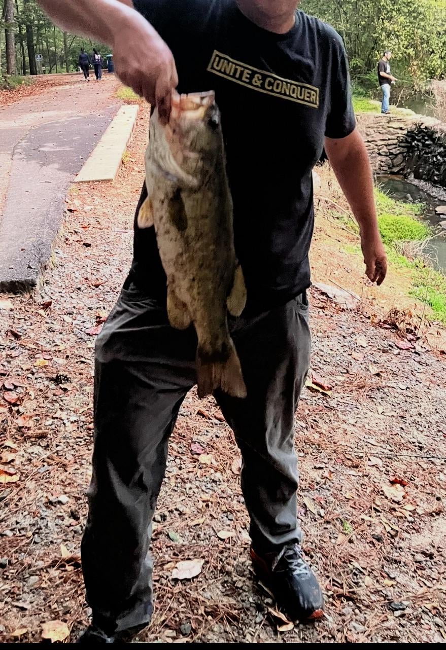 Fishing a random pond right in the middle of a large city – never expected to pull anything this big out. Any guesses on size? AI says around 4.5lbs. Caught on a ML rod, 15lb braid with 8lb leader, 7” black/blue curly tail Texas rigged. Sorry she’s a bit dirty – pond was a little murky.