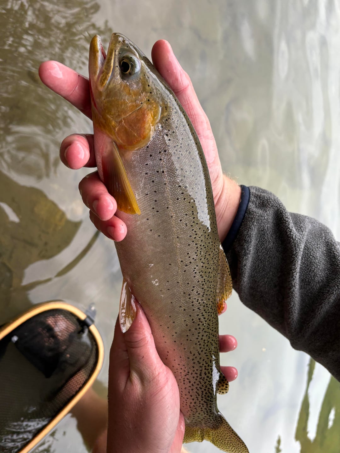 Went out fishing this weekend, need some fish ID. I would say cutthroat's but I'm not 100% sure. Pic 4 looks much different than the first 3. Nonetheless was the best trout fishing in my life. Have never reeled so many in! Posted by defga1326