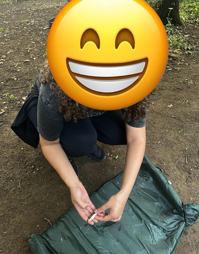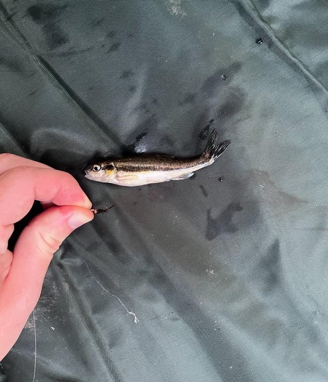 Caught my first fish on a hand tied fly by my husband on a 3m fishing whip. Roughly 3inches? Lovely little minnow Posted by Personal_Thought_941