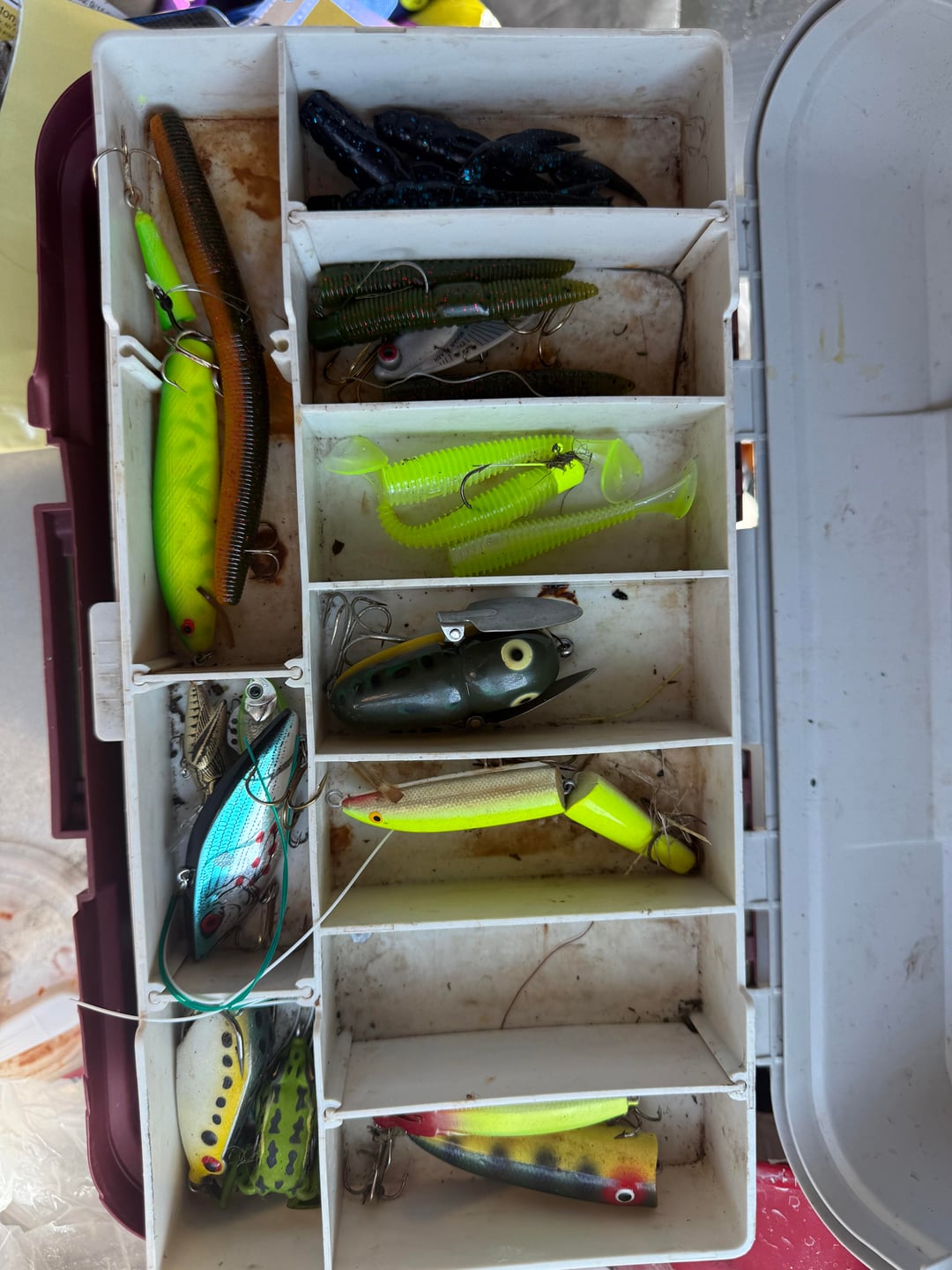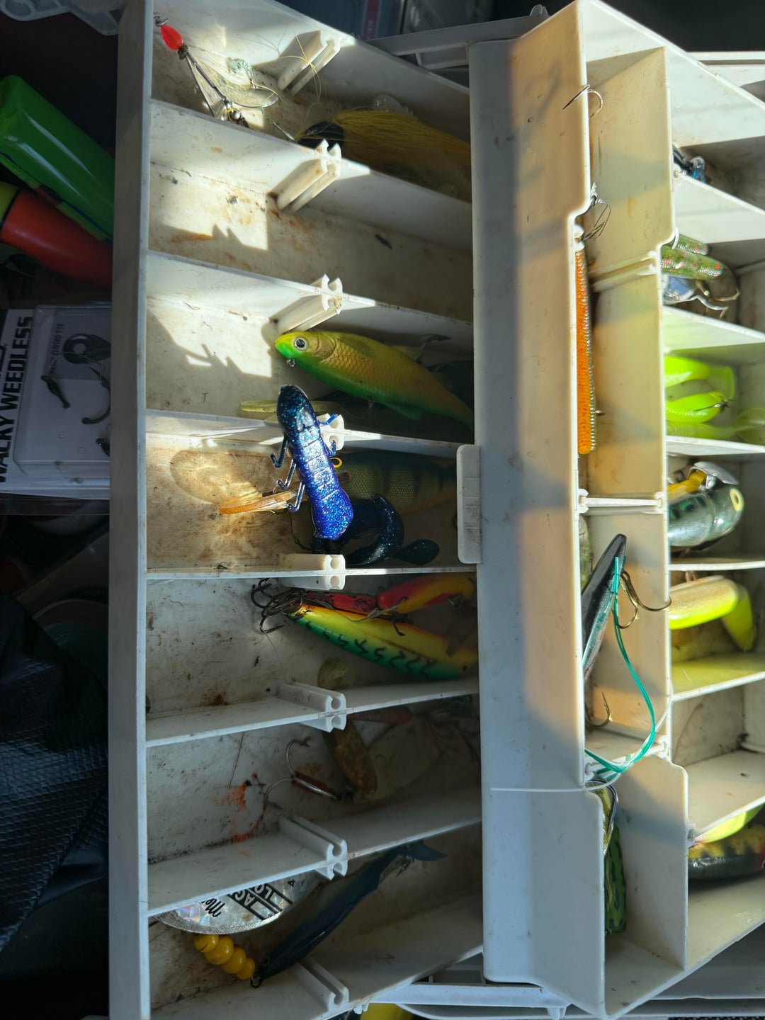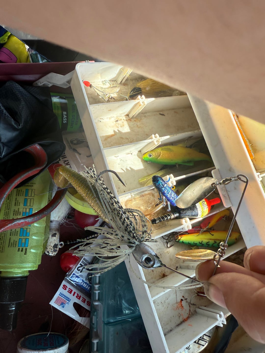 Ok I really need some help because this is starting to piss me off. I’m going to post my entire setup along with all my lures here (I have soft plastics in a different box but covered in bass attractant and don’t wanna get it on my hands right now) I’m running 30mins braid with a 14lbs mono leader, I’m in upstate ny around the Albany area. I’ve fished almost everywhere around me I can find to fish and I can’t get a single bite, I try every different retrieve, all different lures, moving up and down the bank, throwing in a fan, everything I can think of and I can’t catch anything I don’t understand. Any help is appreciated please. I should also add I’ve only been fishing for roughly 3 months so I’m pretty much brand new but I go out atleast 4 times a week from about 4pm-8pm I know evening isn’t a great time but I had read that when the sun starts going down bites pick up but still nothing for me, I’m at a point where I’m gunna start streaming when I go fishing and hope someone joins and tells me wtf is going wrong 😂😂