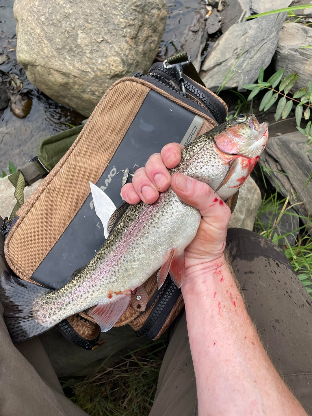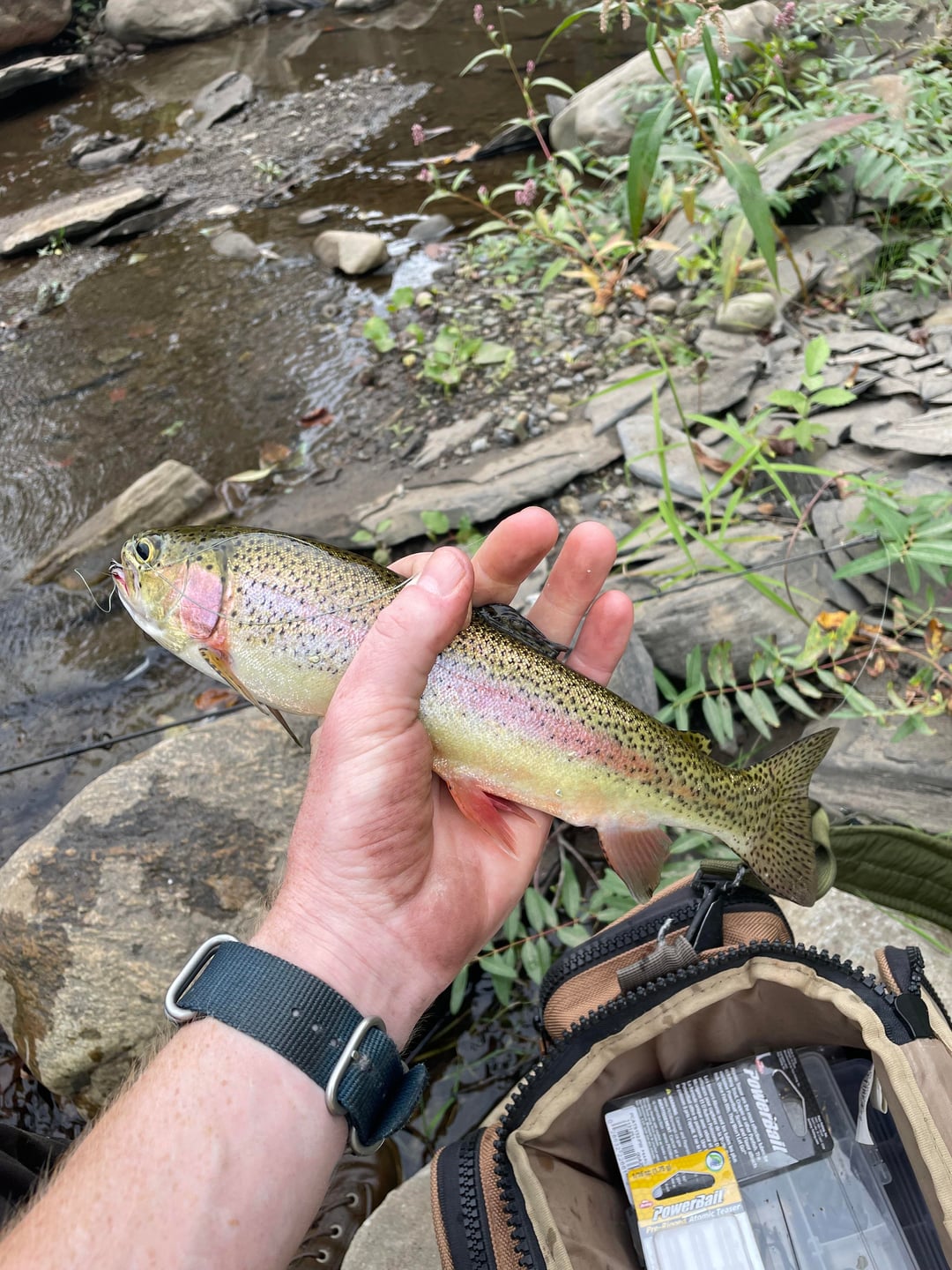 Fishing all my life, last 5 years or so got really into trout fishing. Creek behind my house is stocked almost yearly. But runs very low during the summer and I had never caught a trout there. Recently got laid off and was doing some trout fishing over the weekend so figured I’d give it a shot out back and see what was swimming around. Pulled the largest ( and my first rainbow trout out of the creek ) smaller fella for context. Upstate NY.