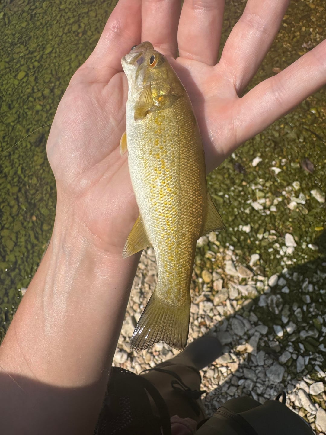 Actually not sure if it’s a large mouth or smallie, caught in a cold creek with smallies.