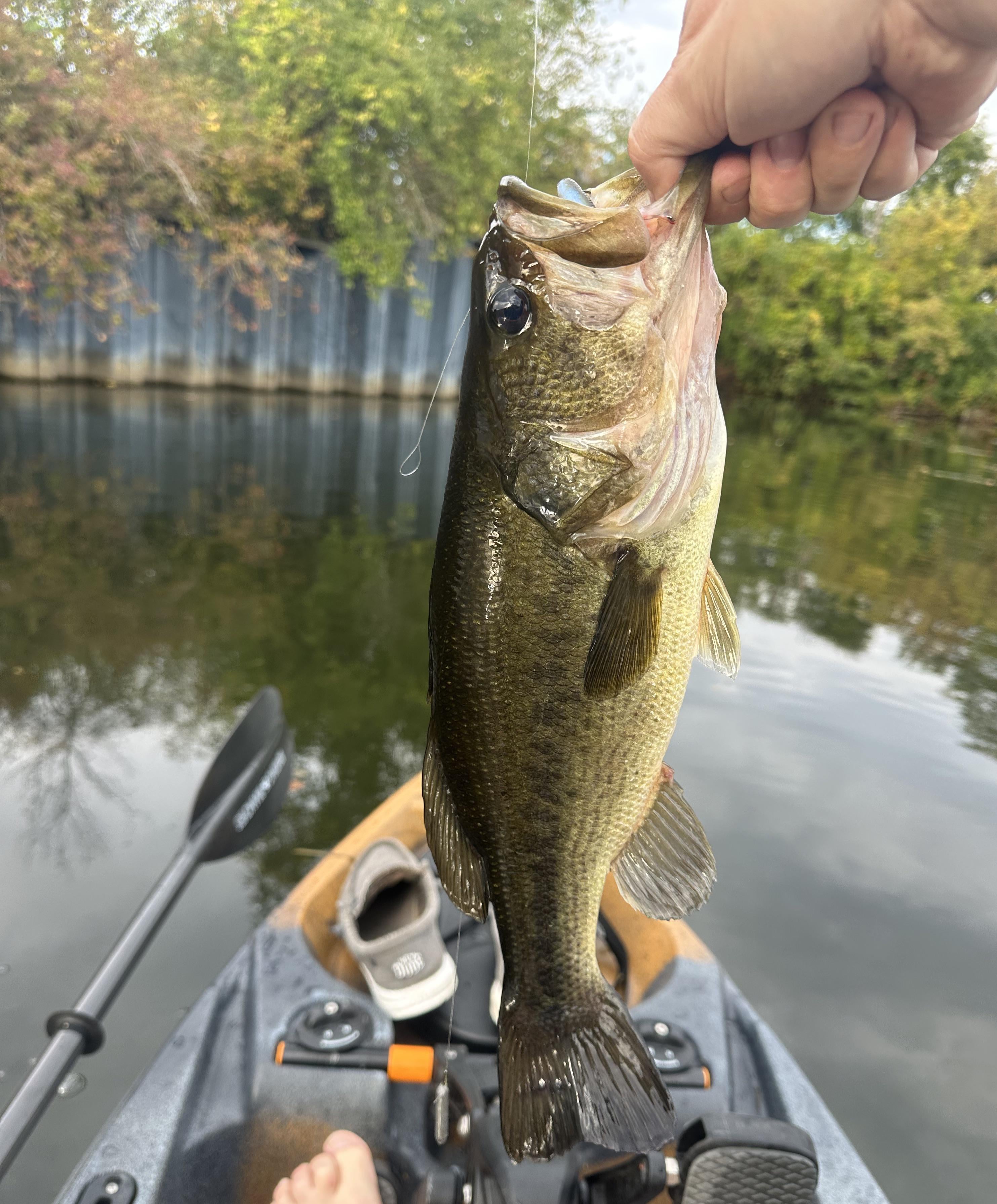 2 lb 3 oz largemouth off of this wall. Gotta say, it took some getting used to, especially casting and positioning my heading to fish a spot. Had a blast and got in lots of exercise. Posted by nthallid