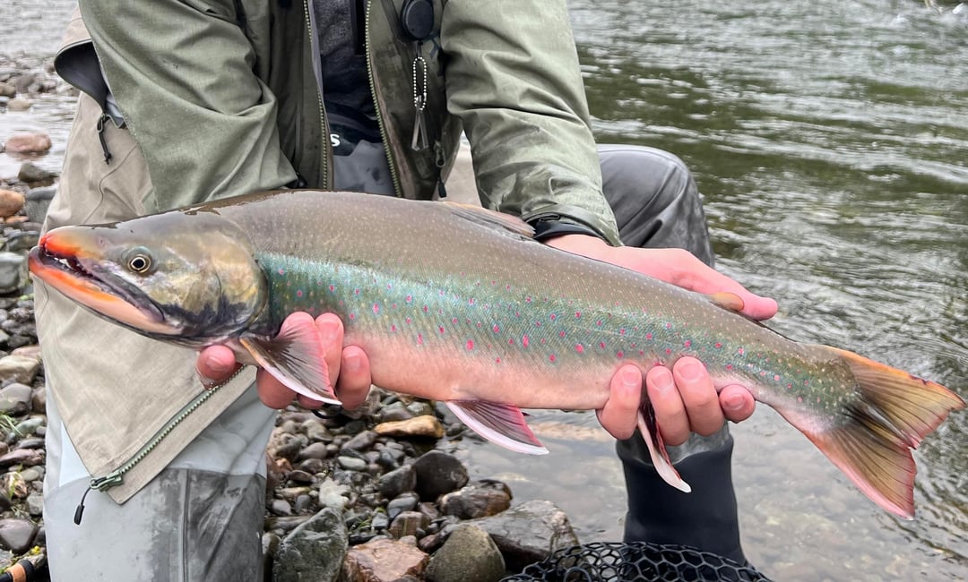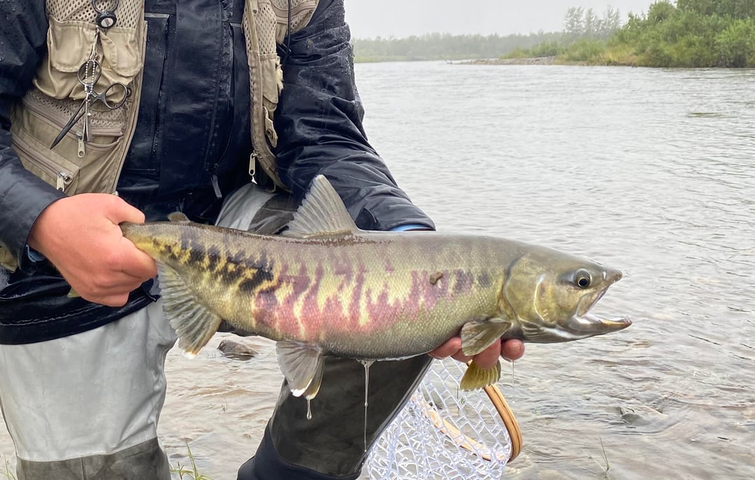 Floated the Arolik river for 8 days out to where it dumps into the Bering Sea. Lots of trout on the mouse, Dollie’s, silvers and chums. Dumped on us for several days, but we did get a couple of clear and chilly ones. Mousing was on fire – can’t post videos here though. No huge trout – most 16-20”, but tons of them. River blew out for the 2nd half of the trip though – relegated to fishing sloughs and back eddies. Still had some fish in them. That’s the downside to a lot of the western Alaska streams – they’re prone to blow out in August.