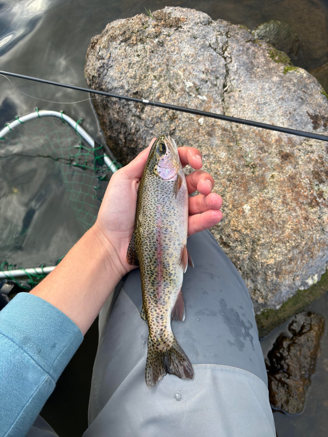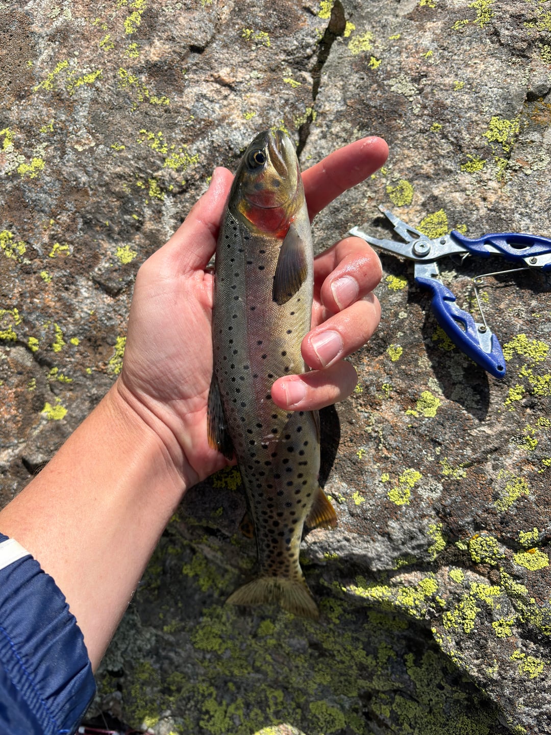 Nice assortment of trout, my guesses would be; cutthroat (westslope?), cutbow, brown, rainbow, tiger (?), and brookie. Bit more variety than my local systems that primarily consist of costal/sea run cutthroat, Dolly Varden, as well as Steelies and resident rainbows.