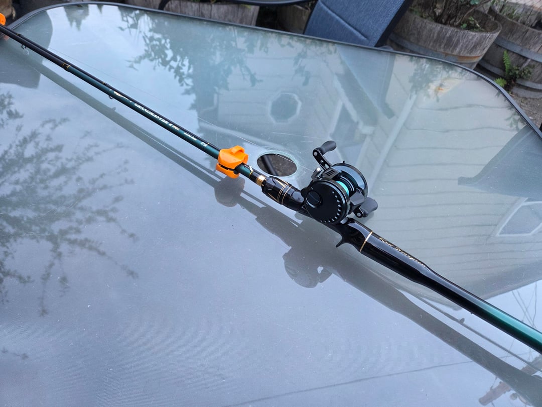Shown is a DK150 I bought from Dankung for $160 and a $31.50 Rollfish Grandmaster II 902 rod, which comes with two tips: M and MH. With M tip it's good for about 6g to maybe an ounce. With MH tip, it launches lures from about 18g to 2oz.