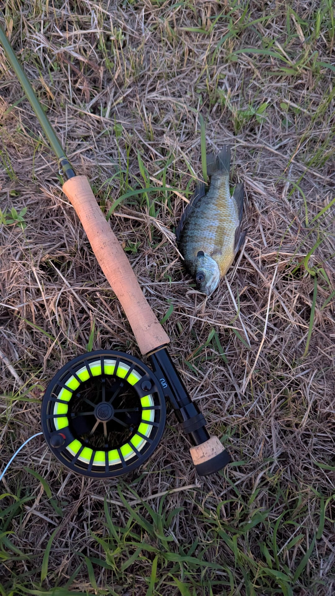 Newb to fly fishin. Been trying like heck to catch something on my fly rod. Fifth time out on a suburban pond I caught these. Super stoked!