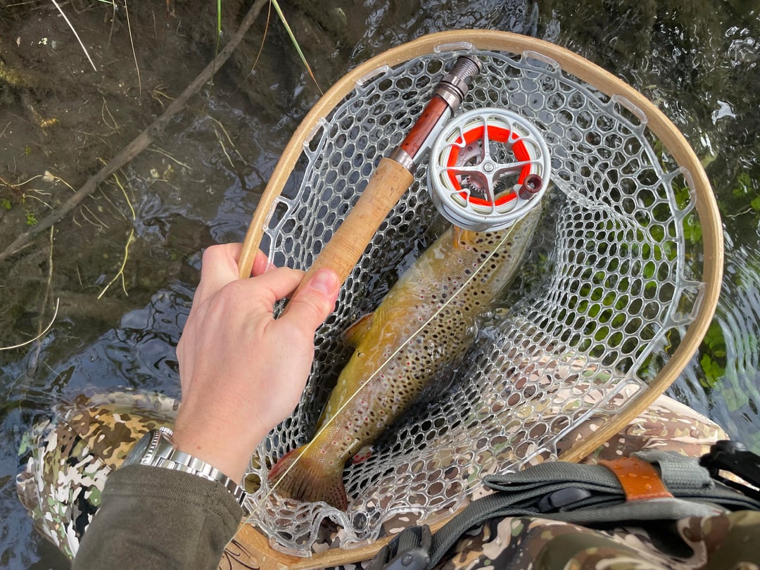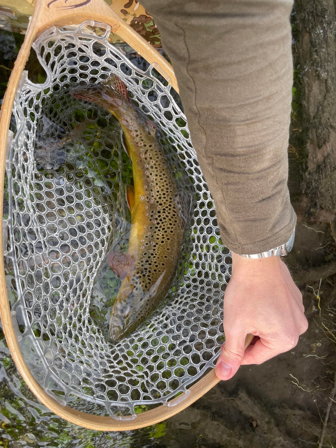 In the past I used a 6wt 7’ rod for this little chalkstream here in Austria but the rod was just to stiff for these extremely spooky trout. Always caught nice little browntrout, thus I wasn’t expecting a big trout. Well, this is the first fish I caught with my new 3wt 8’ setup 😀 you really wouldn’t expect a fish like this from such a nice little river. Pictures wont really show the true size, I quickly measured it but was in a hurry to get it back safe, especially because browntrout are protected at this time of the year here in Austria.
