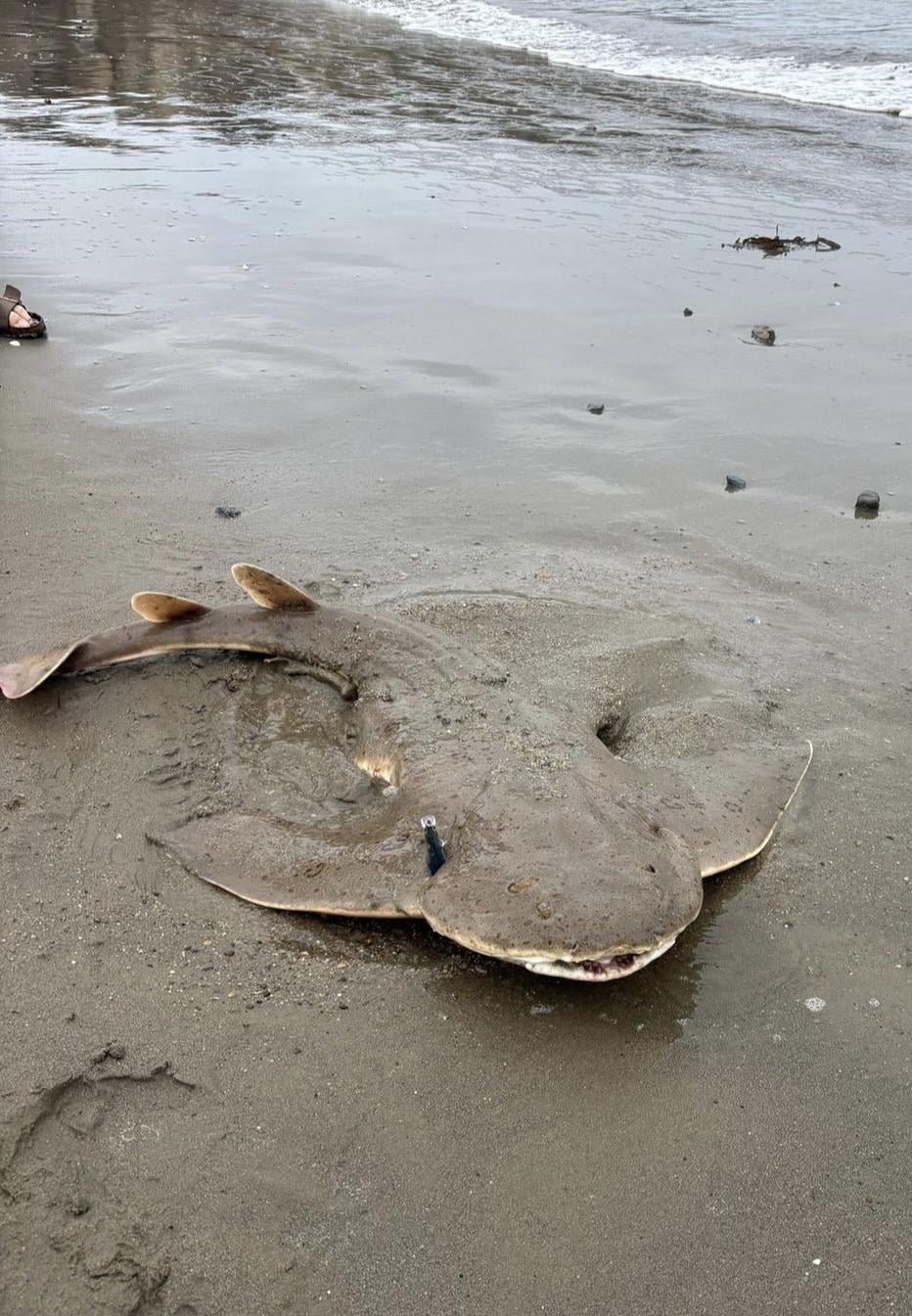 Went on a quick early morning surf fishing sesh to try to catch something from the more calmer waves of the early morning. I was targeting halibut with my Lucky Craft Minnow Lure and on my eighth cast, I was rewarded with an Angel Shark! I accidentally snagged him and throughout the entire fight, I thought it was a decent sized bat ray, and I was delighted to pull up this fanged beauty! He was safely unhooked from my lure and released back into the surf!