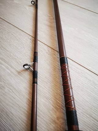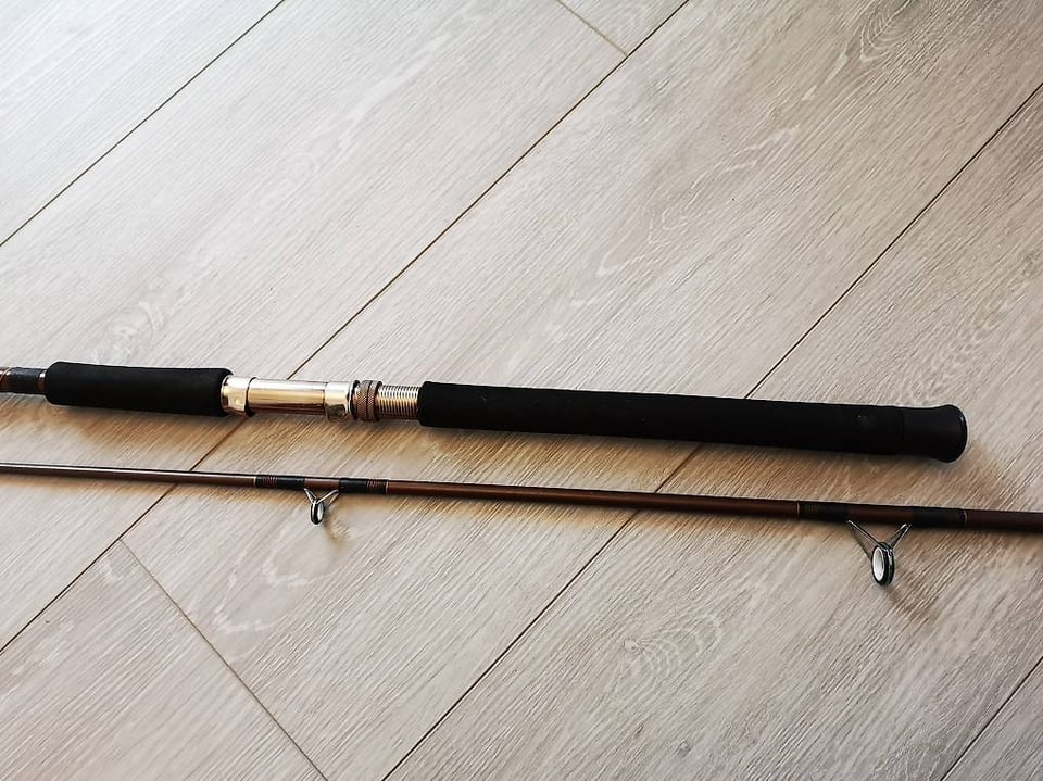 Hello, I found this rod for a very cheap prize, but the seller doesn't know it's exact purpose. He apparently got it from his grandpa and has no further information, apart from the numbers seen in the pic "DP2 – 802" and a 2nd line "8 O ft x 2 sec" – which I assume to be the model and size (length is apparently 248 cm, which is about 8 ft).