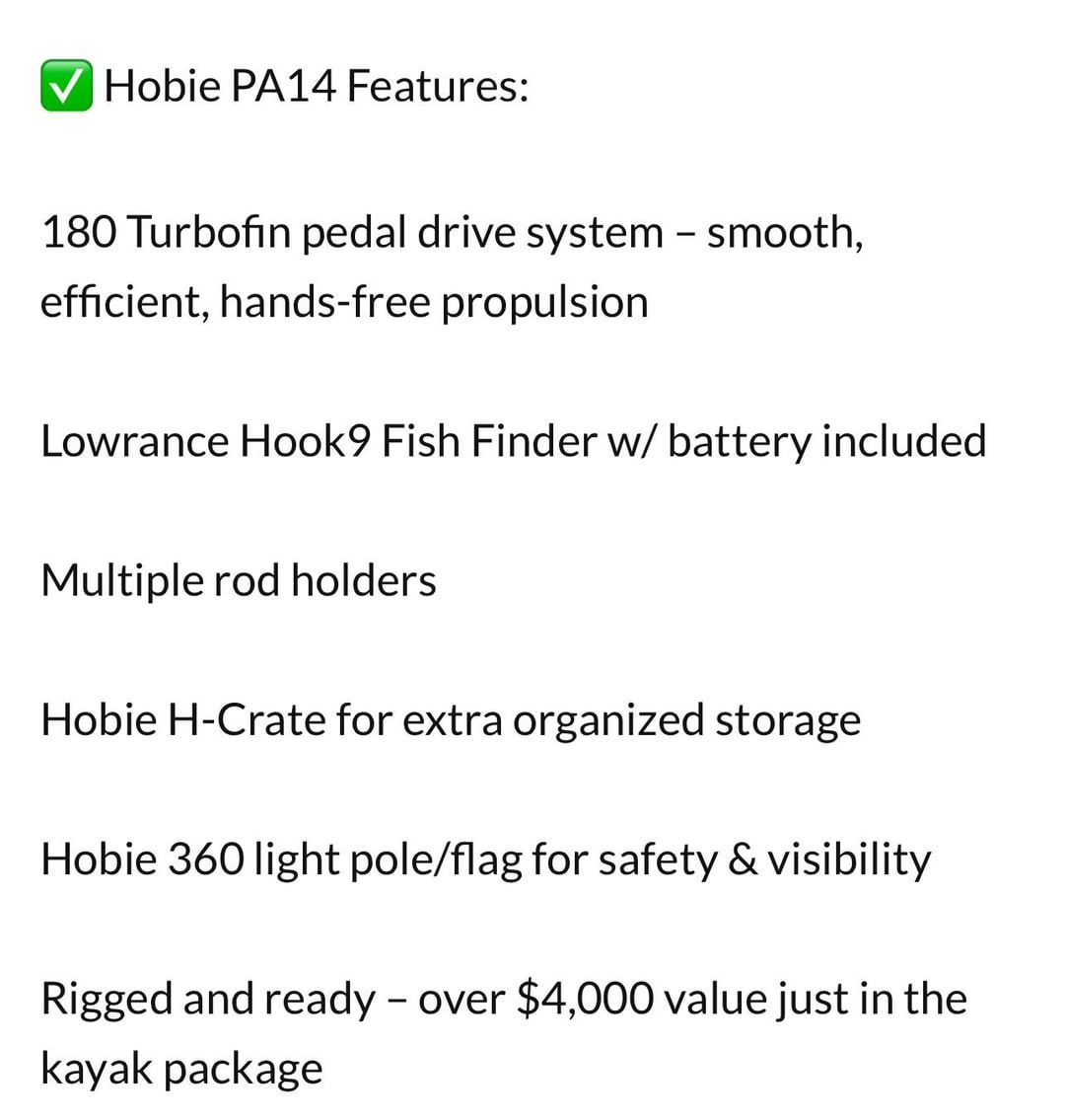Looking to trade my Oldtown Autopilot 136 for this 2022 Hobie PA14 – picture #1 is the kayak he’s offering #2 is the stuff it comes with, ill also be tossing in my lowrance elite FS9 elite. Since his will be coming with the package. He’s giving me more stuff. Thanks!