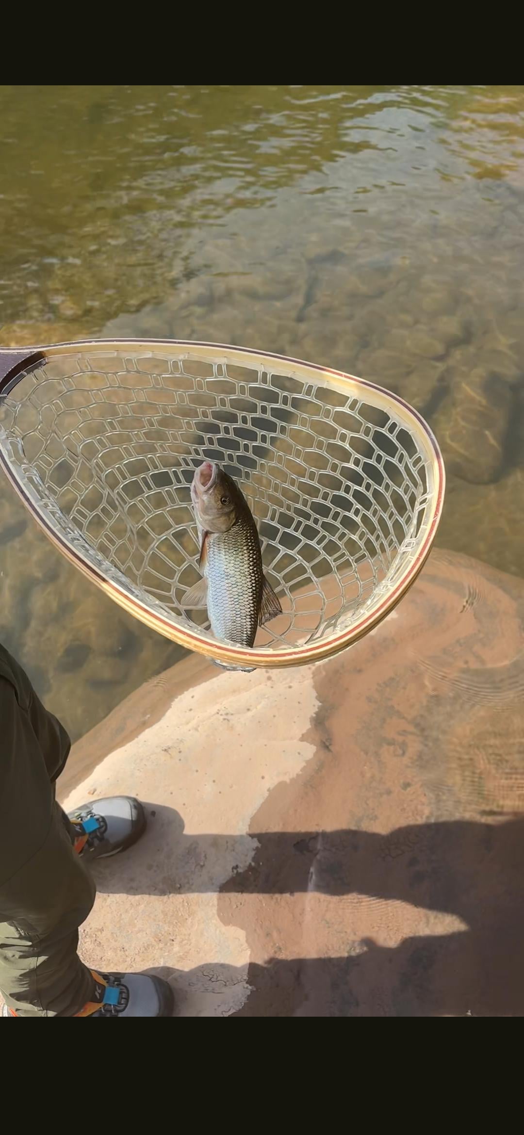 Can anyone ID this fish? This is the best pic I could get from a video I took. I was thinking whitefish or chub (seems way too big to be a creek chub). I caught quite a few of them today in the Catskills. Hard fighters and really aggressive on a dry fly.