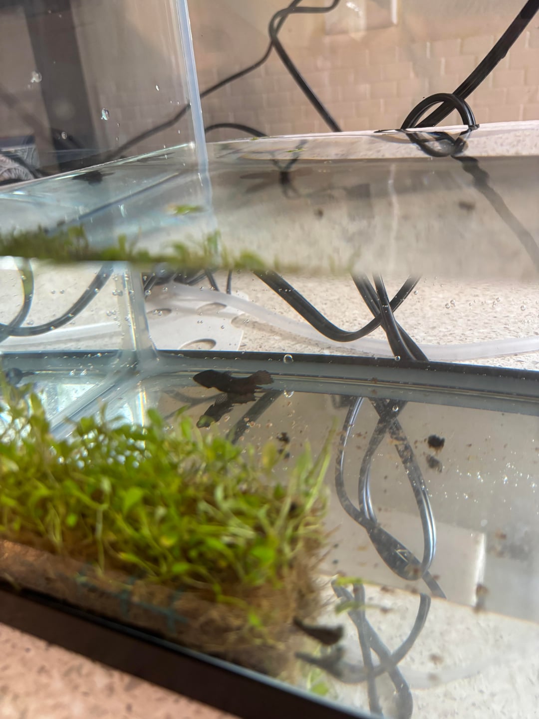 For some background. I have had many tanks and have experience with thriving planted tanks, but I’ve never had a betta fish nor had the desire to get one because I’ve never found a pet store that actually cares about them. Recently I went to petsmart and a betta fish was by itself in a corner with a sign that read “I’m sick, I’m being cured and will be ready to adopt soon.” My heart broke for this fish, I’ve never seen such a rough betta… all of his fins are almost gone from what I’m assuming is ammonia (I tested his cup, it was at 8.0 ppm) and he was laying on the bottom barely breathing. I talked to the store keeper and she said they actually do nothing and they just die, the sign is basically there so people don’t get mad (truly terrible). So she let me have him. Now I am semi-prepared since I’ve had tanks, but unfortunately we just moved homes and my hospital tank bit the dust. So I have a new 5 gal with one plant and catappa leaves and a heater, and the sponge filter had active bacteria or whatever in it from my other healthy tanks to attempt to boost this in fish cycling. Regardless it’s better than what he was in since his cup was so toxic.
