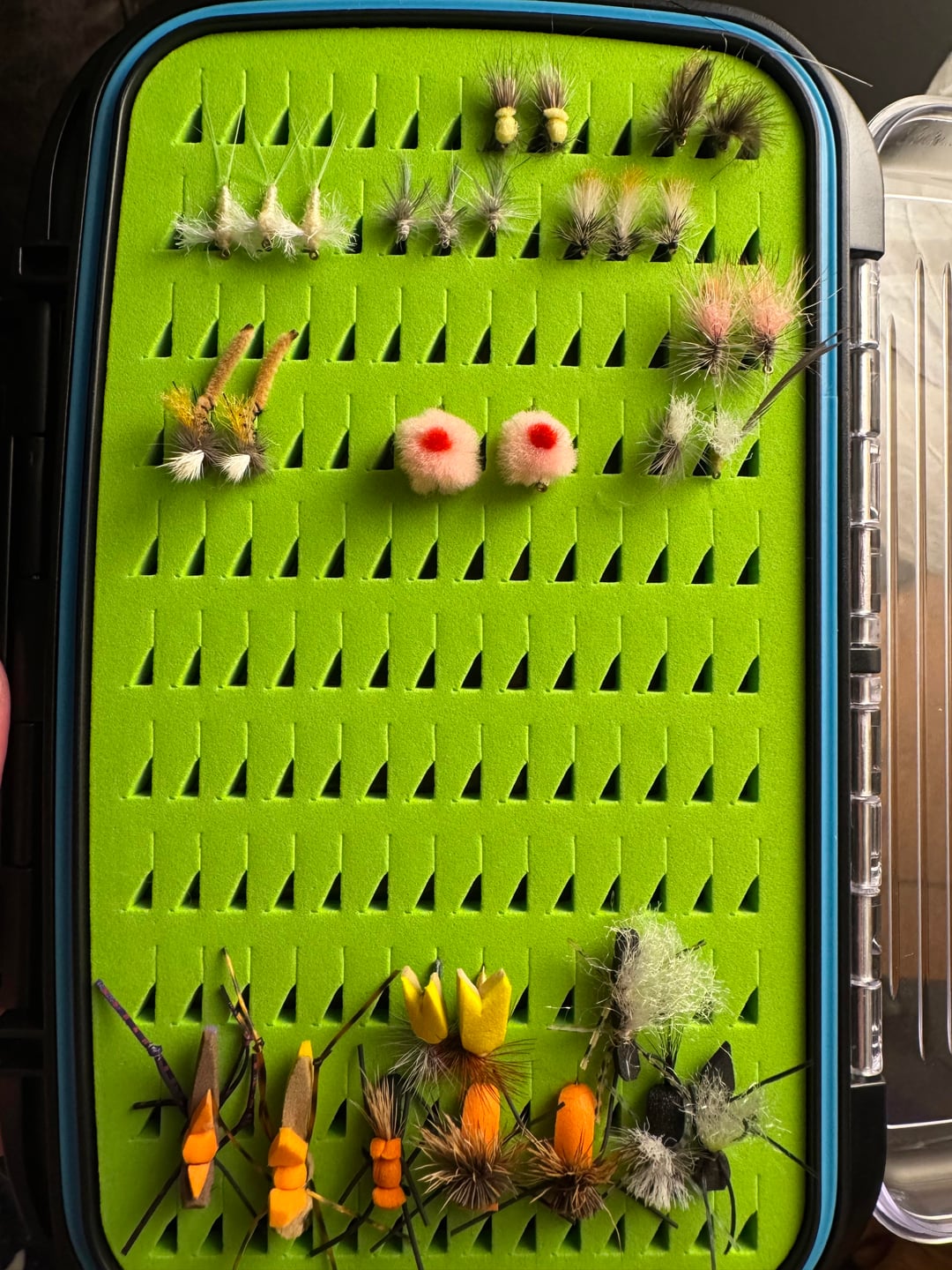We’re still in grasshopper season, so you may wish a few additional colors for hopper/dropper setups. But I would defer to the info available from The Driftless Angler in Viroqua. They have publish fishing reports multiple times per week on their website ( [https://www.driftlessangler.com/](https://www.driftlessangler.com/) ) that can also provide info.