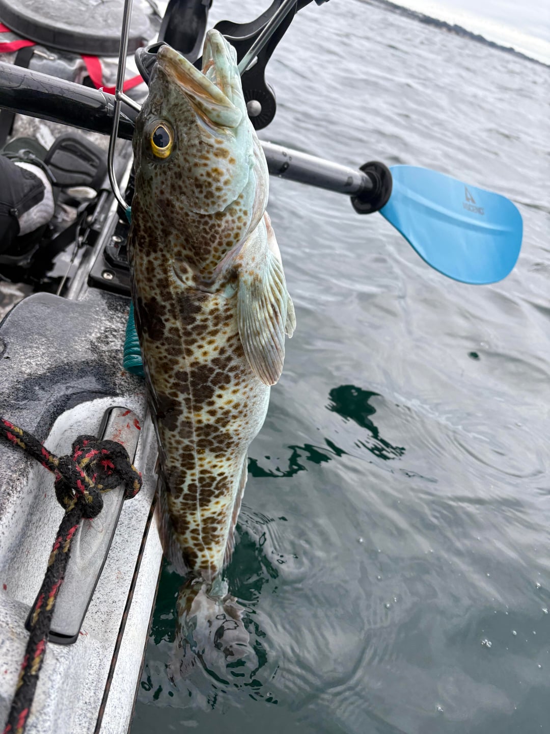 Second day out, motor wasn’t working so I had to paddle😑 but got a nice ling and over 30 rock cod😂 old town predator Mk, bought it used a couple weeks ago!