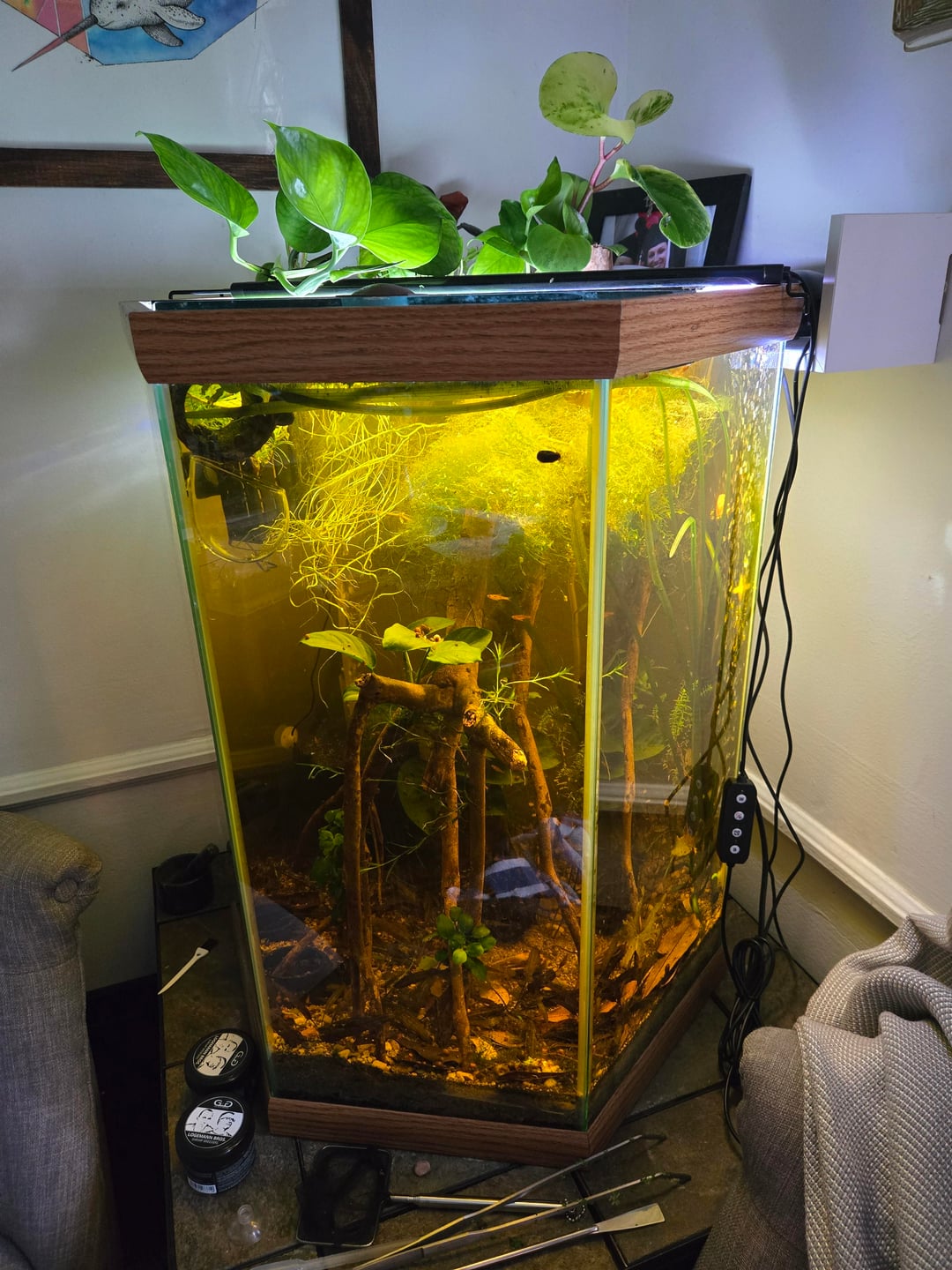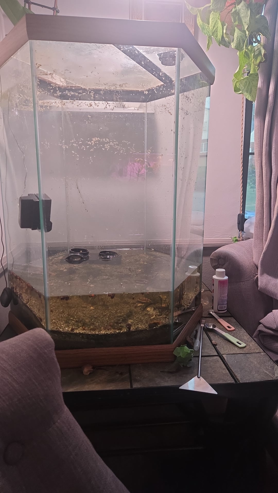 I have thought about turning the tank into a paludarium or terrarium but I would like to drain the last bit of water since I treated it with dog dewormer for the brown planaria (which some are still alive so not sure what works to get rid of them).