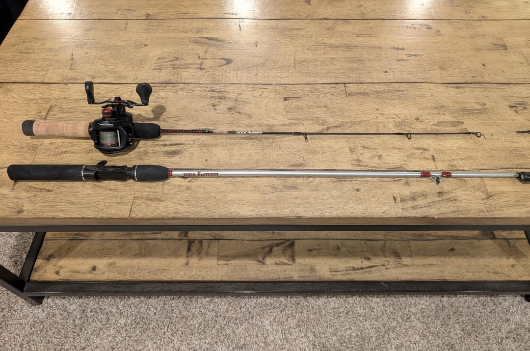 First of all, I'm not an expert angler, not a beginner, but somewhere in-between. There is a reason I'm posting this in this beginners subreddit, more on that in a moment. The Frankenstein rig you see here is a Lews CF1SHL casting reel spooled with 10# braid, and an Ugly Stick Dock Runner spincast rod. Here is the backstory before the reason for the post. This was my first ever casting reel that I bought new some years ago, and it sat unused after I upgraded to a nice Penn reel. I also had a really old Zebco spincast rod sitting in my garage. I always used the handle half of the Zebco rod to hold reels while spooling new line. One day I cut a short piece of Pex plumbing pipe and taped it to the end of the Zebco half rod for a makeshift guide. I tied on a short "no-show" sock to the braid, and used this for casting practice in my basement during the winter months. I kept thinking "Man, this would make a sweet bank fishing rig in the heavily forested areas that surround some ponds I fish." I went to Walmart today and bought the Dock Runner spincast version for $20, and also got some Seaguar 10# Tactx braid spooled up on the Lews. I haven't fished it yet, but I'm going to try it out for sure, and I'll donate the spincast reel that came with it or give it to someone who needs it. This rig won't be used for bomb casts or lunkers, but for short casts around ponds in heavy shrubs and trees. Now to the reason I posted it here. For the new anglers that either want to try a casting reel but are afraid, or for those who struggle with the process. This. Is. The. Way. I found that making short casts with this with a heavy sock on the end (no noise or damage to my walls) over and over again, has improved my casting and control skills immensely. This Lews reels brakes pale in comparison to my Penn reel, but the heavy weight of the sock (major backlash possibilities) and furniture obstacles have really helped me to achieve almost zero backlashes, even with a cheaper reel, and also helped my accuracy. I'll let you know how it fishes, but I hope this helps those who struggle with casting reels.