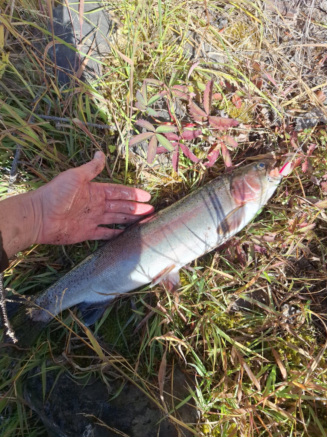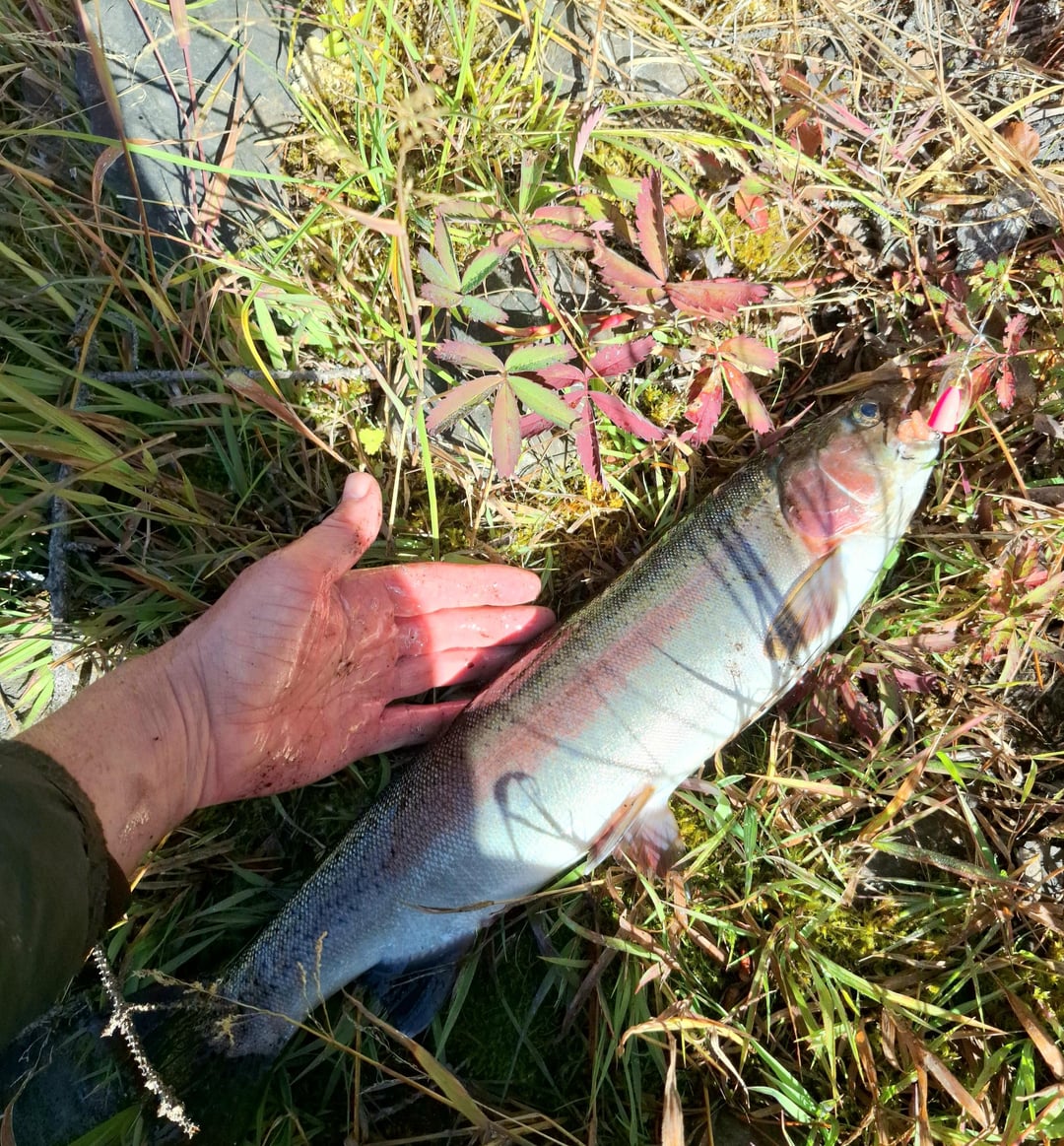 This bad boy put up an incredible fight this morning. Had the line zinging off the spool. Fishing from shore with a 4-piece travel rod. Deep in the woods at a hike-in lake in British Columbia.