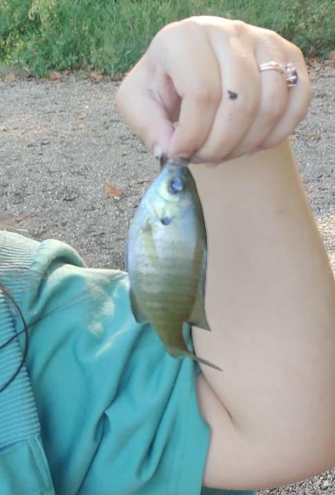 After a long battle of getting my rod and spooling it totally wrong to then spooling it perfect and then learning that my anti-reverse was broken and then being able to switch for a new rod and carefully spooling that rod….I caught this here little guy as my first fish finally, and I couldn't be happier 😁