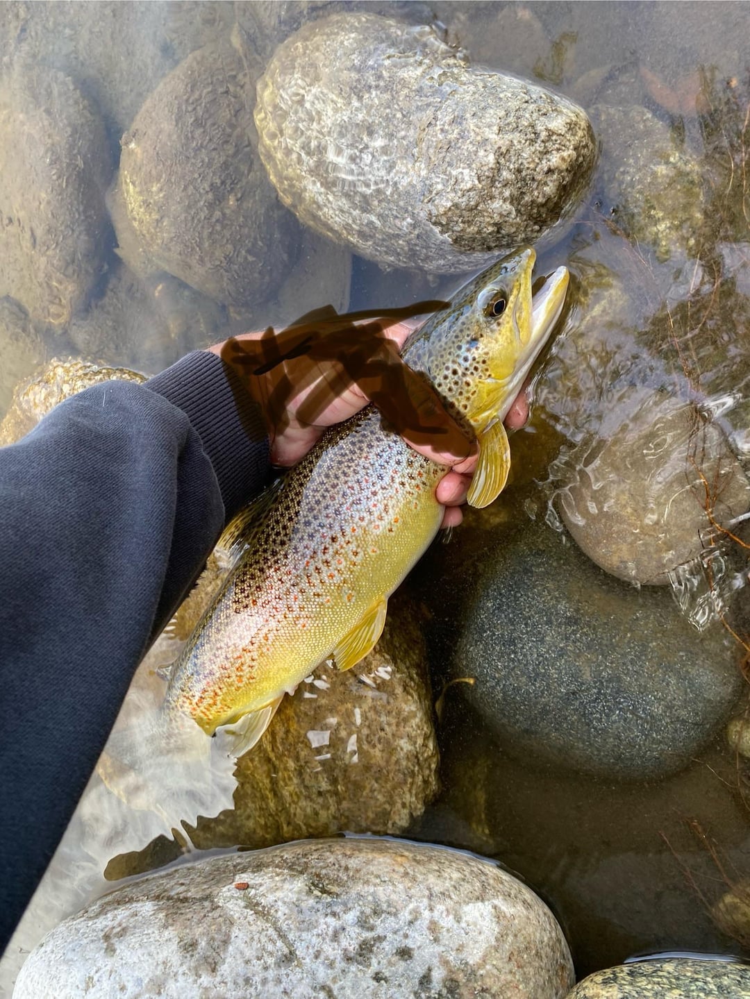 It was just one of those perfect days yesterday. The sun was shining, but it wasn’t hot, the temperature was just right. I pulled into one of my regular spots and was the first and only person there all day. First cast, had a hit but missed the hook set. Second cast, hooked a beautiful little brown. Third cast, hooked into a nice rainbow. Almost every cast I threw there was at least some interest in the bait lazily drifting by. I proceeded to catch a mix of a dozen browns and rainbows throughout the 4 hours I was on the water as well as missing a good half dozen that were able to spit the hook out. This was probably the best trout day I’ve ever had to date