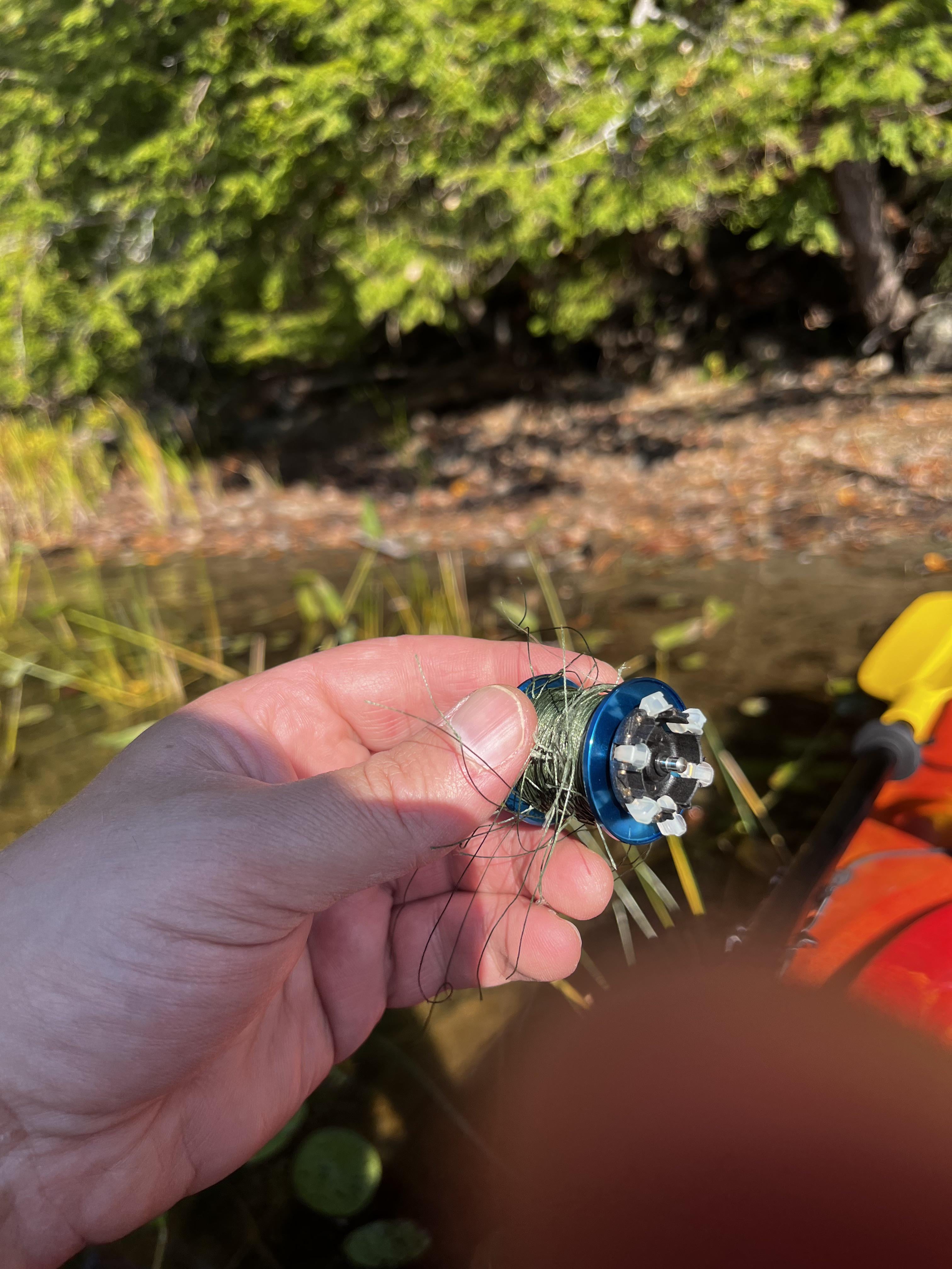 Next while trying to unstuck it I’ve got loop upon loop coming out. I cut some off to try and remove some excess line. Now it’s like I’ve got 6-8 strands of line coming off at the same time. I took it home, took a razor to it and kept removing short strands until I got down to one clean mainline (about half the spool of line is gone now). What’s the deal with this and why would line get hitched underneath and banked to one side if I wound using the reel and spooler?