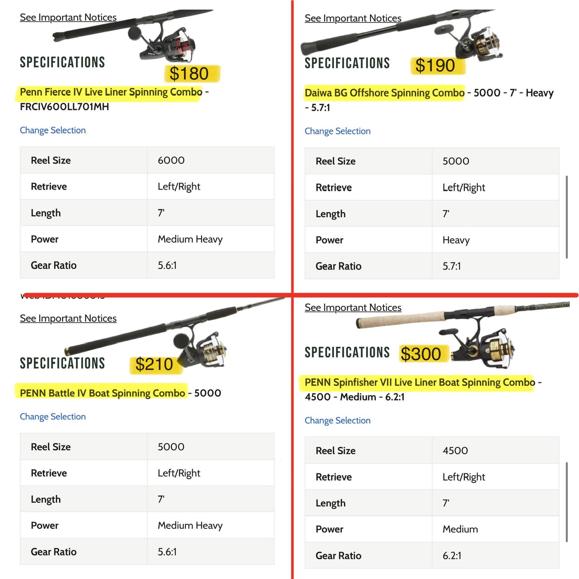 Hi friends! I started fishing ~3 months ago, and am ready to upgrade from my cheap set up. My budget is <$300. I’d love any opinions on these 4 combos, or other recommendations!